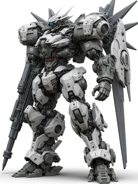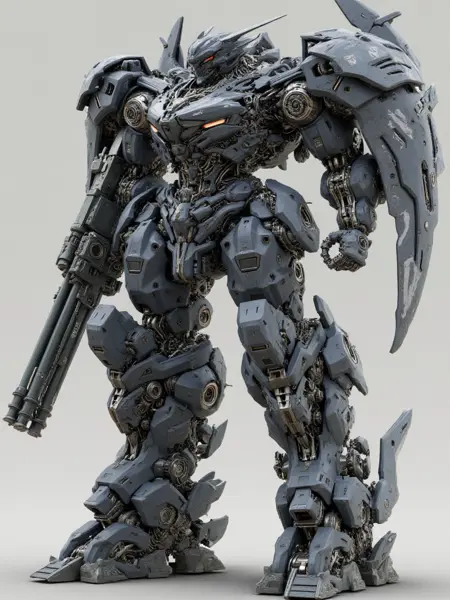 复杂的机甲设计,类似于赛博坦人,但具有机甲猎人轮廓,并配备装甲核心