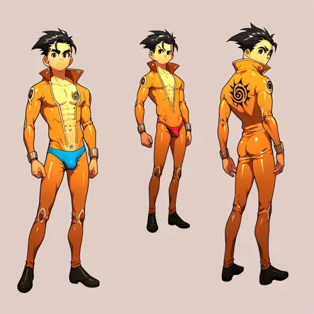 gauntlets, belt, smile, black footwear, armor, red bodysuit, sleeveless,