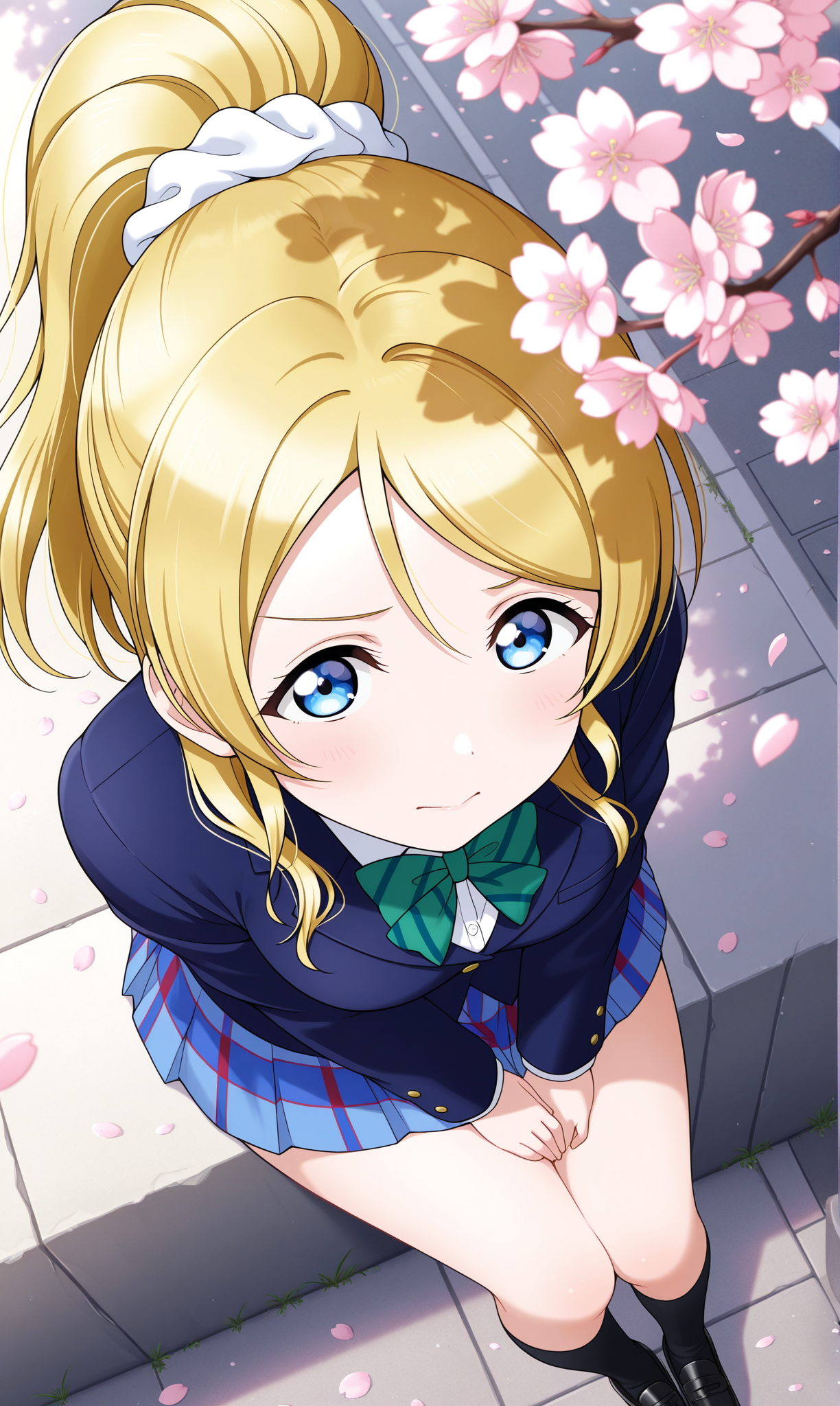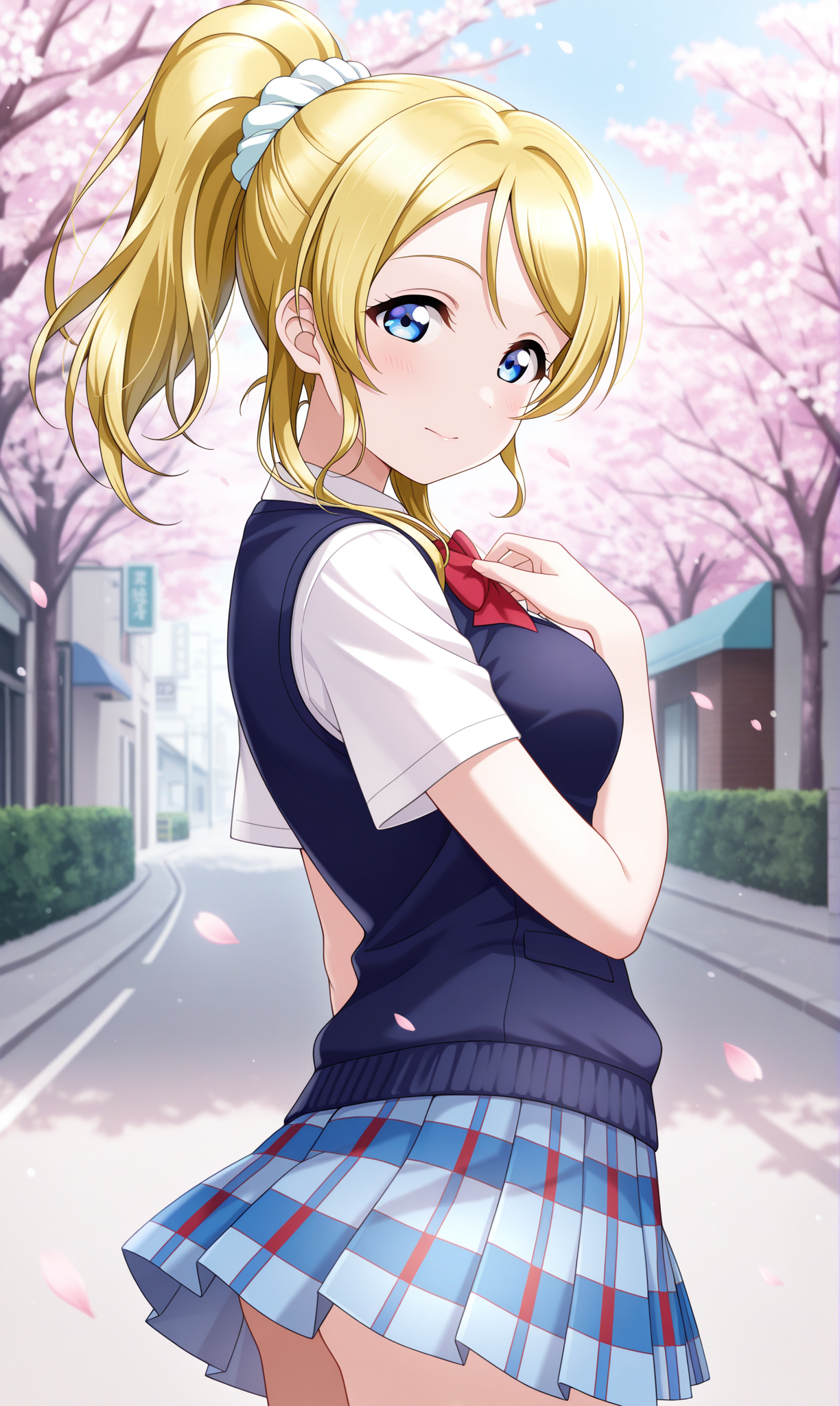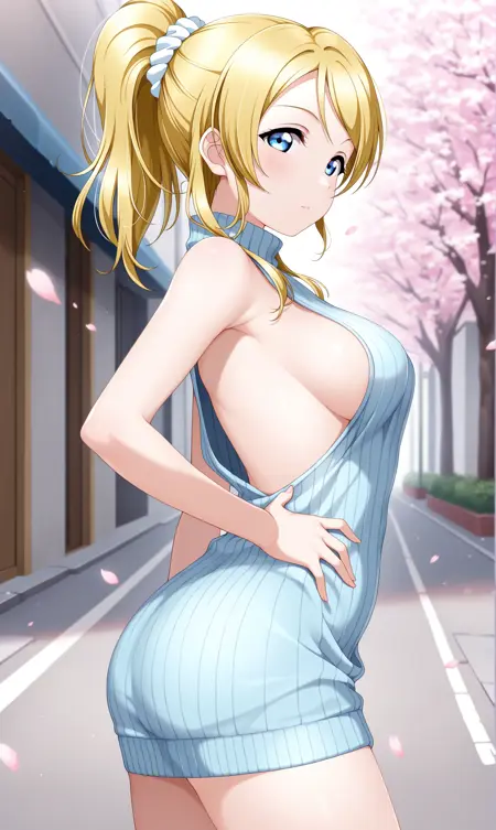 ayase eli, 풀테일, 긴 머리, 파란 눈, 금발, 머리끈, 흰색 머리끈