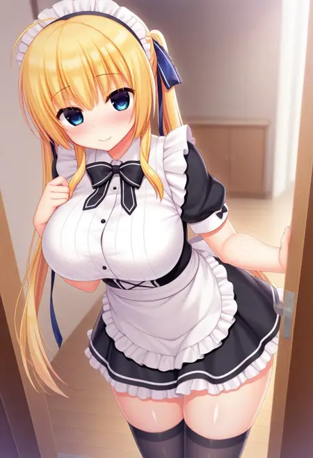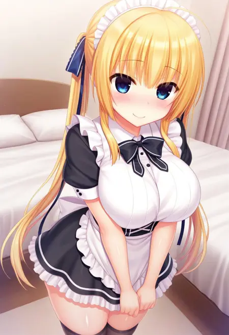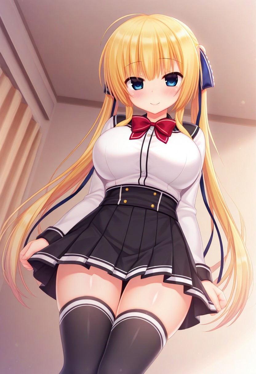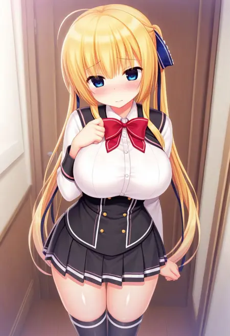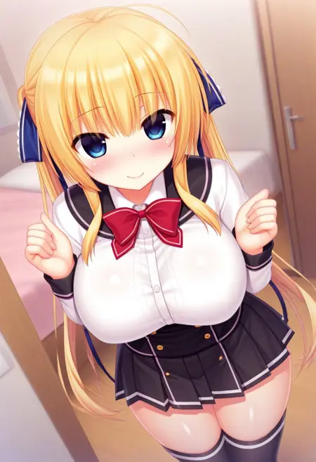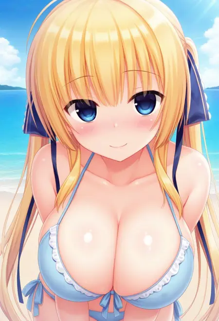 Recommend Prompt:Arshe R Sakuragi, blue eyes, blonde hair, long hair, twintails, hair ribbon,