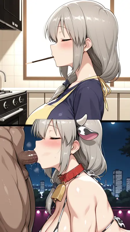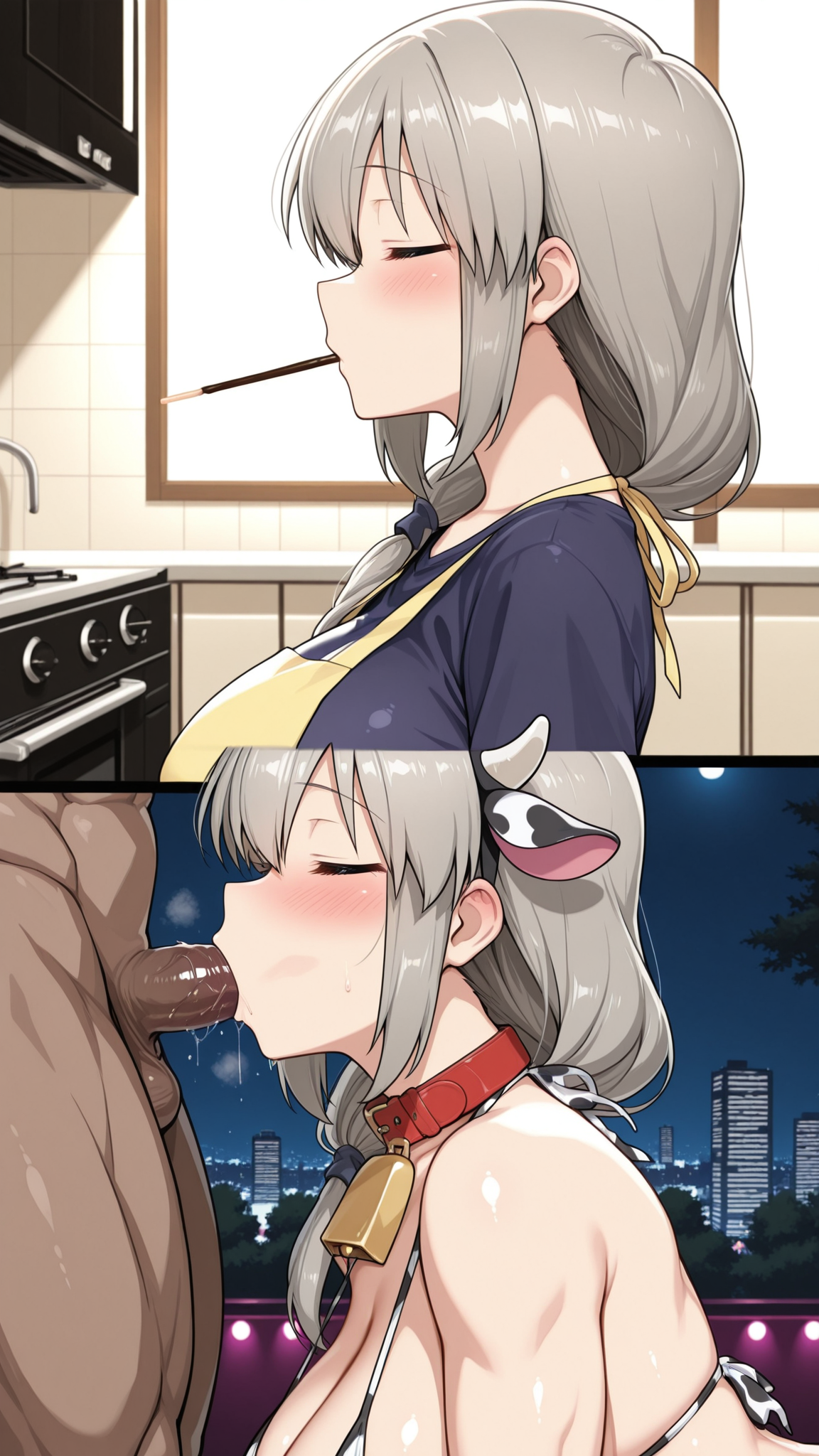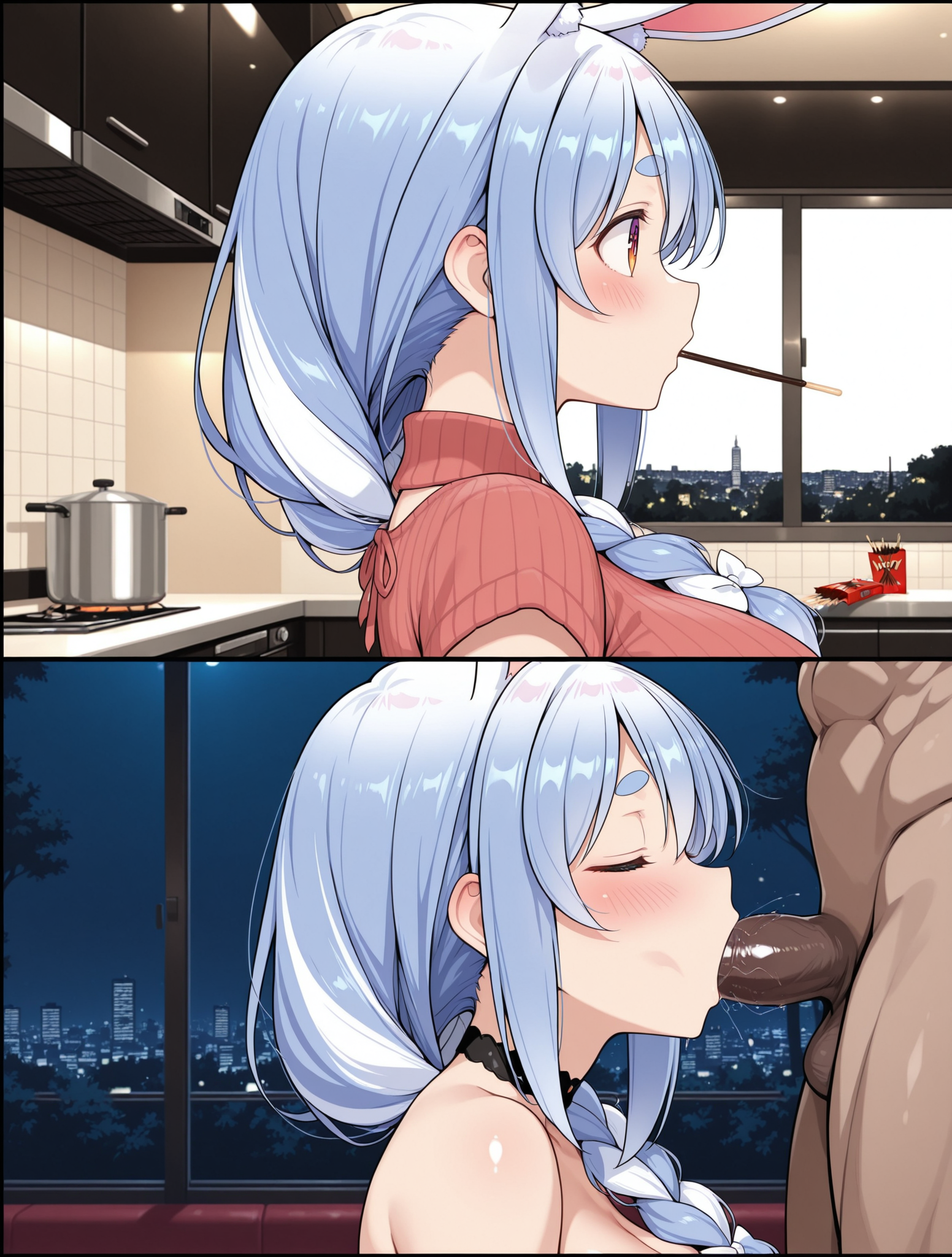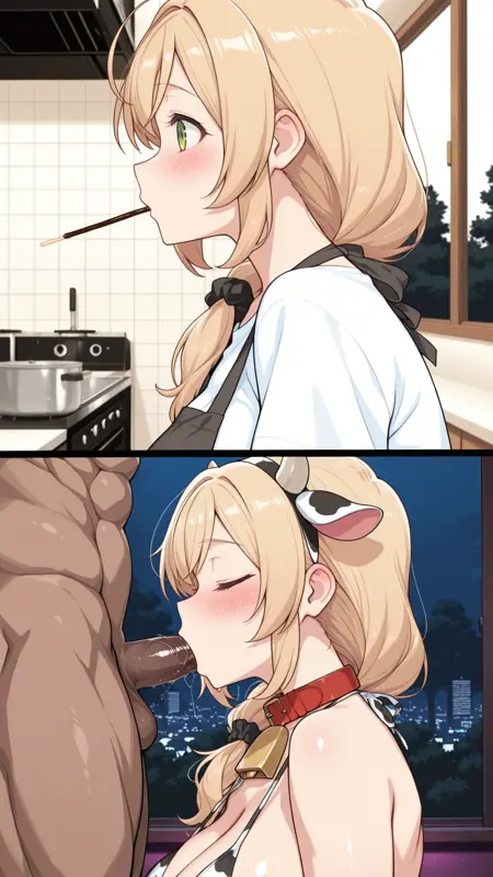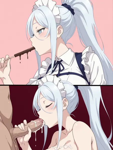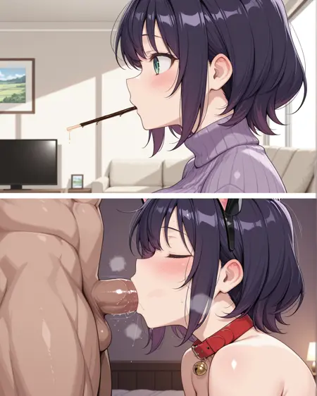 一个用于分屏的LoRA,上半部分为女孩嘴里含着一块Pocky棒,下半部分为她正在口交。