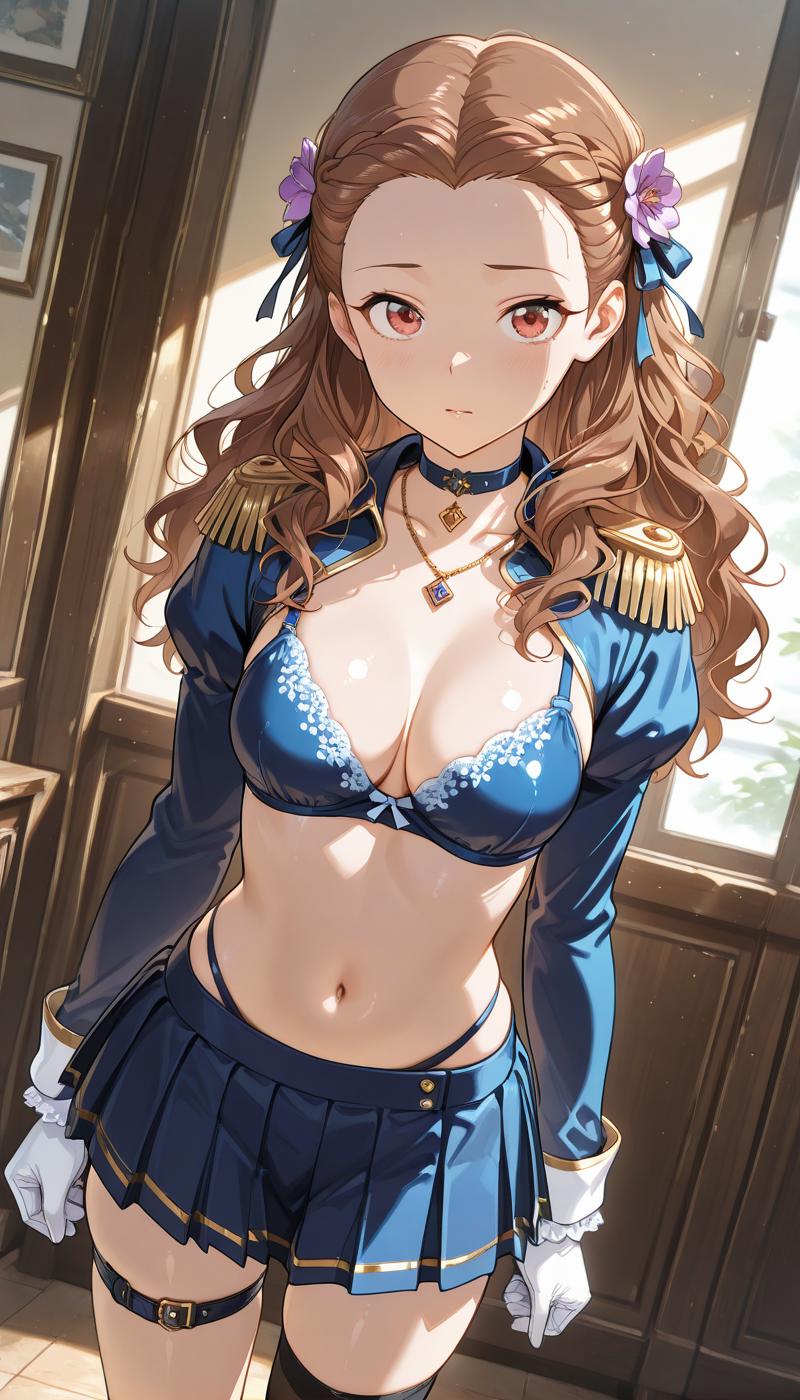 치마, 긴 소매, 머리 장식, 허벅지 양말, 배꼽, 리본, 가슴선, 보석, 속옷, 관절뼈, 머리 리본, 꽃, 허벅지, 주름치마, 초크, 검은 허벅지 양말, 허리, 머리 꽃, 미니스커트, 복부, 목걸이, 브라, 파란 치마, 허벅지 스트랩, 한쪽 허벅지 양말, 어깨장식, 보라색 꽃, 쇼트 아우터, 파란 브라, 파란 초크, 장갑, 수영복, 비키니, 비키니 상의만, 파란 비키니,