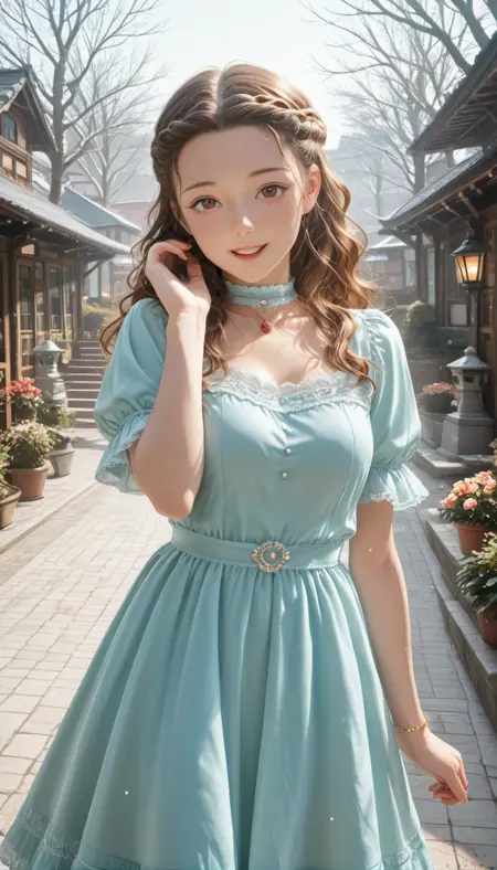 IMSekiHiromi, 긴 머리, 가슴, 갈색 머리, 빨간 눈, 중간 크기 가슴, 땋은 머리, 물결 모양 머리, 이마, 곱슬머리,