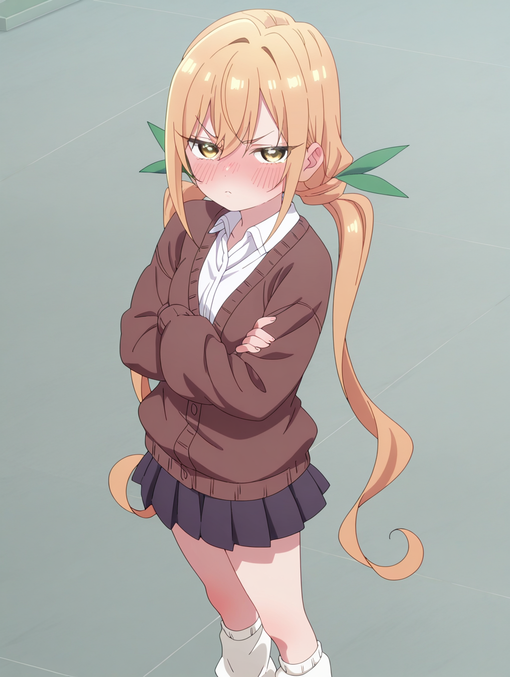 주름 치마, 회색 치마, 넓은 양말, 흰색 양말, 느슨한 양말, 미니 치마,