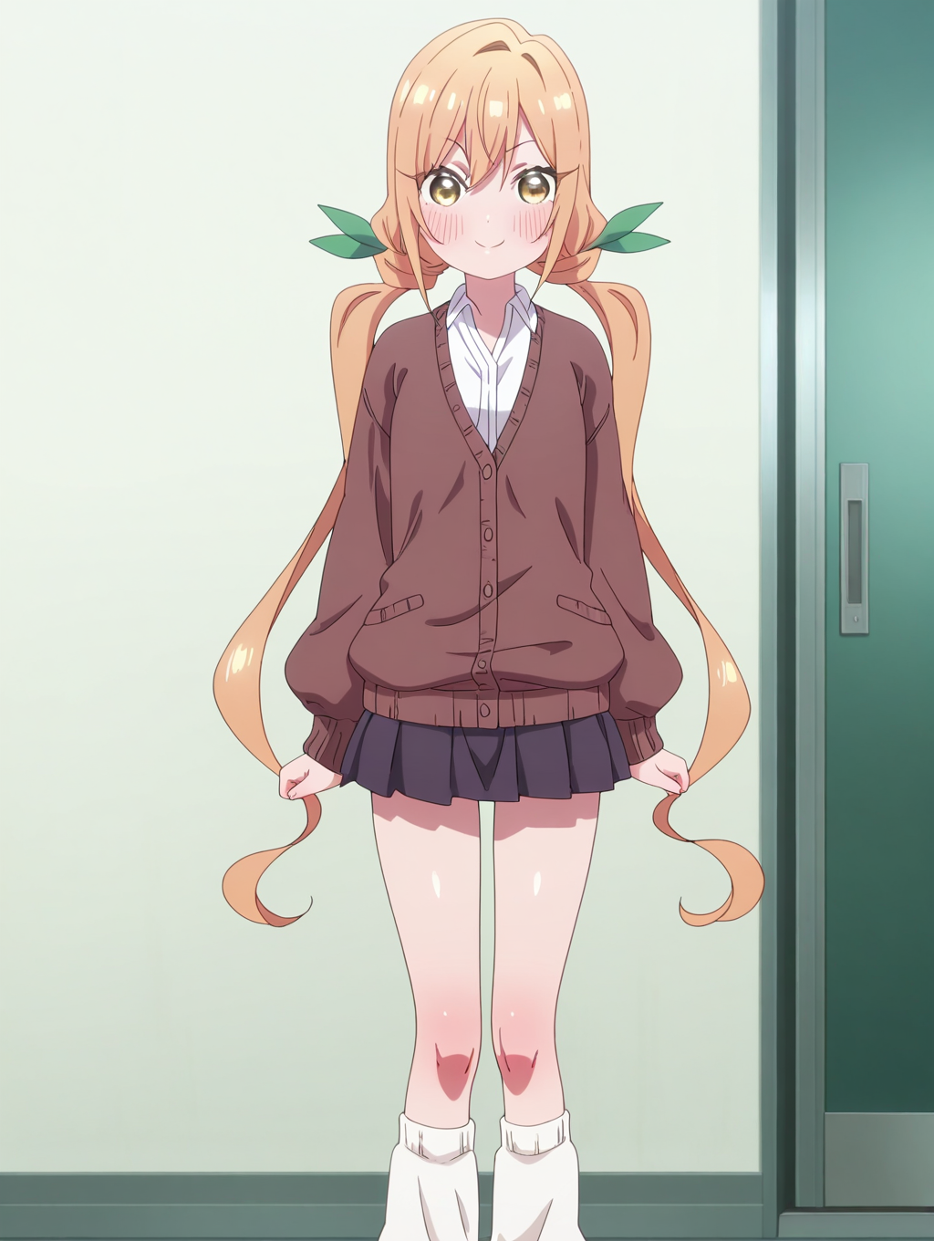 카라네 유니폼(복장), 칼라 셔츠, 흰색 셔츠, 갈색 카디건, 긴 소매, 학교 유니폼,