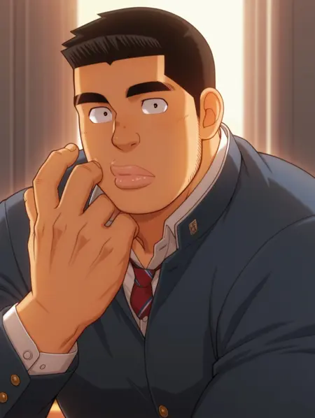The protagonist of the story and a first-year student at Shuei High School. He is very tall and muscular, easily dwarfing everyone around him. Women tend to find his appearance off-putting or frightening, likening him to a bear or gorilla, but Takeo nevertheless has many friends due to his popularity among men, who are inspired by his strength, physique, and vitality. Despite his hulking appearance and strength, Takeo has an affable personality and is actually extremely kind and selfless, quickly helping others without a second thought throughout the story, and never holding a grudge for things people say about him. Near the beginning of the story, he saves Rinko from a groper and quickly develops feelings for her, but mistakenly thinks that she likes Makoto. It was soon revealed by Makoto that all the girls Takeo had crushes on spoke ill of him, resulting Makoto rejecting them. Takeo had no knowledge of this until he was told. Rinko, later on, confesses her love to Takeo, which he gladly accepts. Takeo is also a considerate and caring person to his family and friends. When he found out that Rinko has to move to Spain due to her father's job, Takeo let her go anyway although he did not want to be apart from her. When Takeo found out that Rinko has troubles during her exams in Spain, he quickly rushes to her place to comfort her and promises her to always stay by her side no matter what happens instead of blaming himself for the problem. However, he made a bold move by proposing to Rinko in front of a large crowd, much to Rinko's surprise, but she happily accepts in excitement. In the end, Takeo is shown leaving his high school with Rinko and Makoto after bidding farewell to his friends at the high school graduation ceremony, beginning their new college life together.