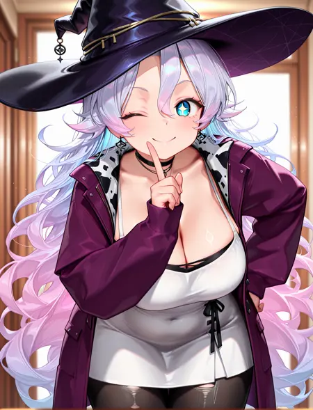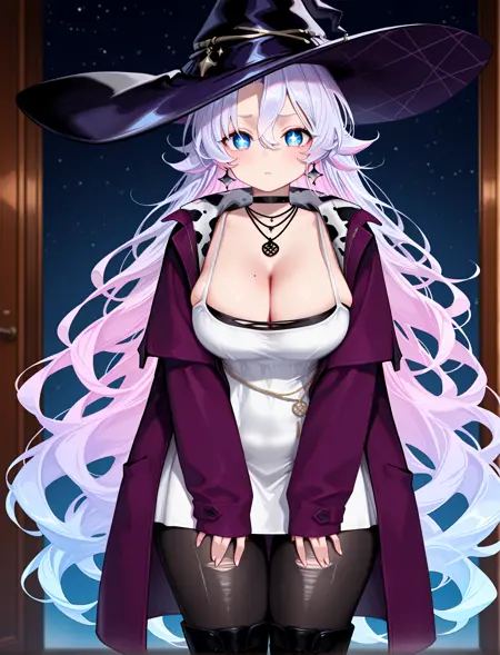 | 训练词汇 | MichiruPC, very long hair, blue eyes, symbol-shaped pupils, parted bangs, hair between eyes, light purple hair, multicolored hair, gradient hair, large breasts, star earrings, choker, cow print inner collar, purple jacket coat, long sleeves, cleavage, jewelry, black necklace, pure white dress, sleeves past wrists, black pantyhose, torn pantyhose, black boots, black witch hat, 已复制! ShisuiPC, low side ponytail, blue eyes, symbol-shaped pupils, parted bangs, hair between eyes, light purple hair, multicolored hair, gradient hair, large breasts, black jacket, sleeves past fingers, white crop top turtle neck, midriff, black pants, suspenders, black shoes, witch hat, 已复制! very long hair, blue eyes, symbol-shaped pupils, parted bangs, hair between eyes, light purple hair, multicolored hair, gradient hair, ahoge, large breasts, 已复制! |