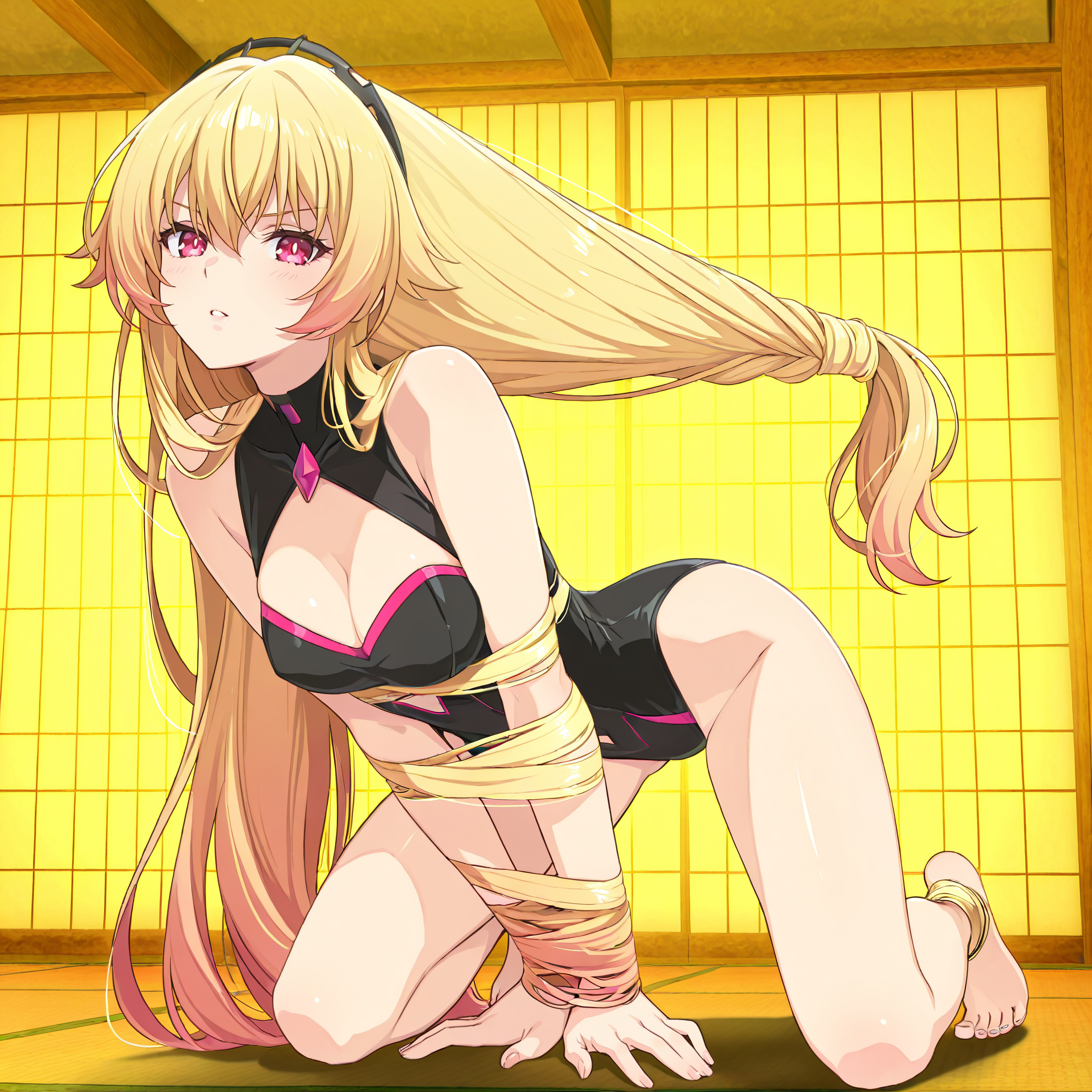 bound,hair bondage, very long braid,dynamic pose, bound by own hair,suspension
