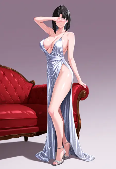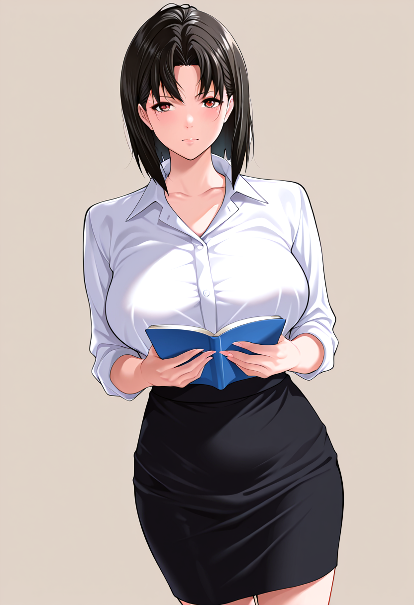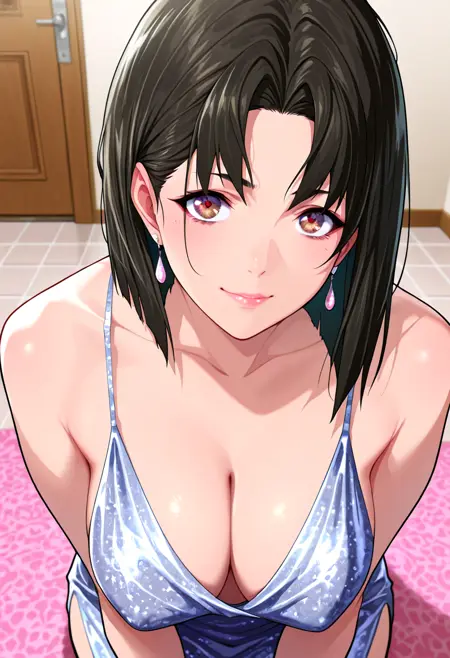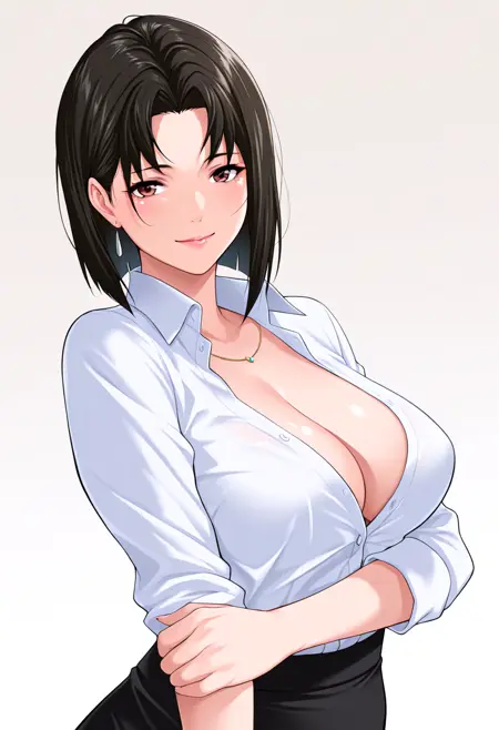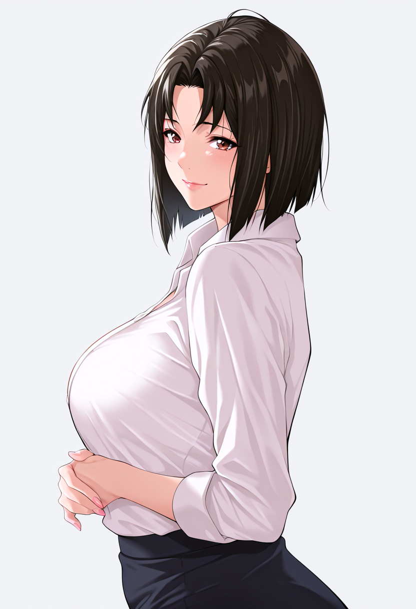 稳定化:(mature woman), (black hair), short hair, dark brown eyes,