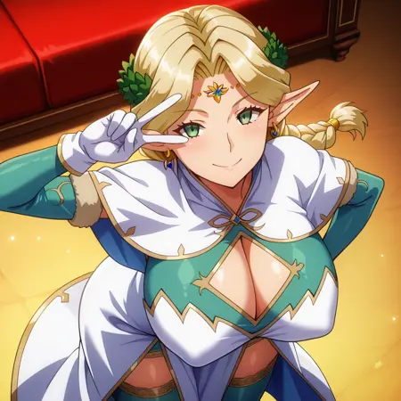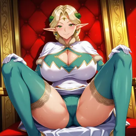 | 训练词汇 | EphildisAgraliel, 1girl, solo, elf, pointy ears, huge breasts, wide hips, curvy, mature female, blonde hair, long hair, braid, hair ornament, circlet, green eyes, earrings, jewelry, dress, clothing cutout, cleavage cutout, white gloves, fur collar, white capelet, green thighhighs已复制! |