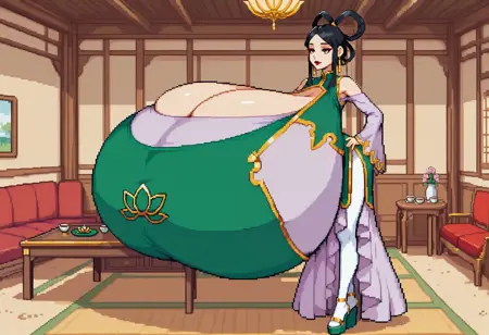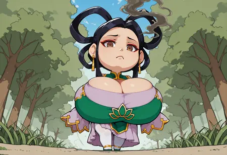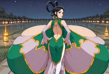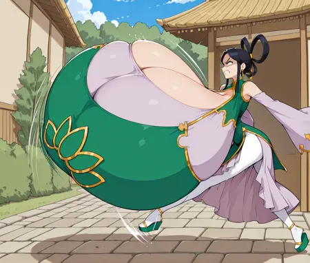 Keep in mind that using the gold lotus accent tag when generating from behind or other positions where it won't be visible can cause some AI wonk to happen. Had to train it as its specific thing, since training it without causes it to always come out really weird. I swear just having the "gigantic breasts" tag always makes everything much more unstable on every model.