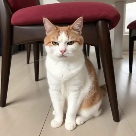 Prompt: WD, Introducing our adorable Ginger Tabby Cat, perfect for adding a touch of charm to any home. This cute, short-haired cat features a beautiful mix of light ginger and white fur, with piercing yellow eyes that give it an expressive and alert look. The cat's small size and gentle demeanor make it an ideal pet for families or apartment dwellers. It sits comfortably on a sleek, modern chair with dark wooden legs and a red cushioned seat. The light-colored wooden floor adds a cozy and inviting ambiance to the scene. Perfect for cat lovers seeking a low-maintenance yet affectionate companion.