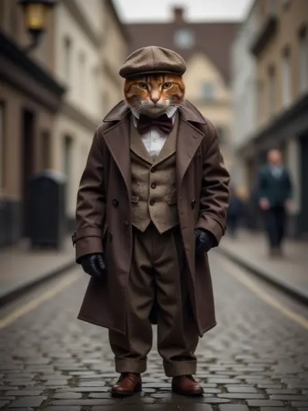 프롬프트: WD, 이 세련된 남성복 스타일을 모방한 고양이 조각으로 당신의 스타일을 업그레이드하세요. 이 정교하게 제작된 작품은 매끄러운 검은 고양이가 정장 스타일의 회색 수트를 입고 있으며, 깔끔한 흰색 셔츠, 매치되는 회색 넥타이, 그리고 정돈된 주머니 스퀘어를 완비했습니다. 고양이의 날카로운 노란 눈과 당당한 자세는 어떤 컬렉션에도 우아함과 개성을 더해줍니다. 고품질 수지로 제작된 이 조각은 고양이 애호가와 패션 애호가 모두에게 이상적입니다. 책상, 선반에 전시하거나 독특한 선물로 딱입니다.