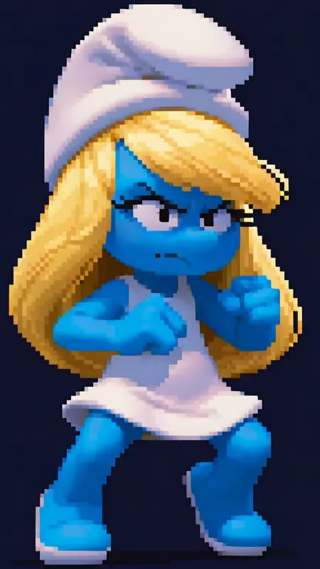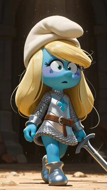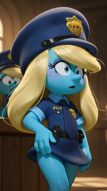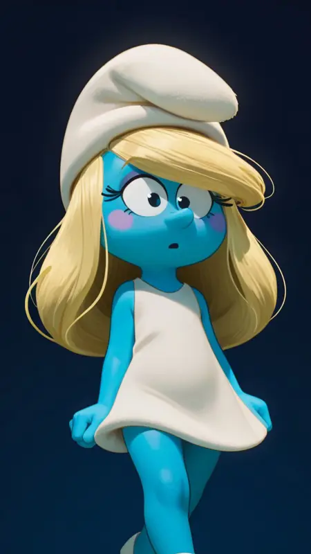 Smurfs2025,蓝精灵妹,蓝色皮肤,金色头发,白帽子,白裙子,白鞋子
