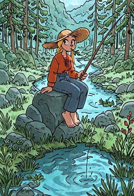 This Lora doesn't really do what I had wanted it to do, but the style is not unpleasant. Trained on the images of french comic artist Lewis Trondheim. The style sadly doesn't resemble his works when used at a strength of 1. You get closer to something resembling his character designs at 1.5, but then you get all kinds of visual errors especially in the faces and the background.