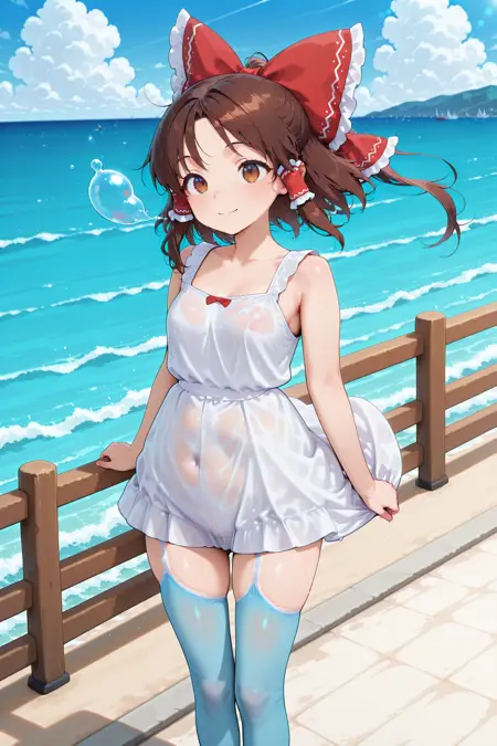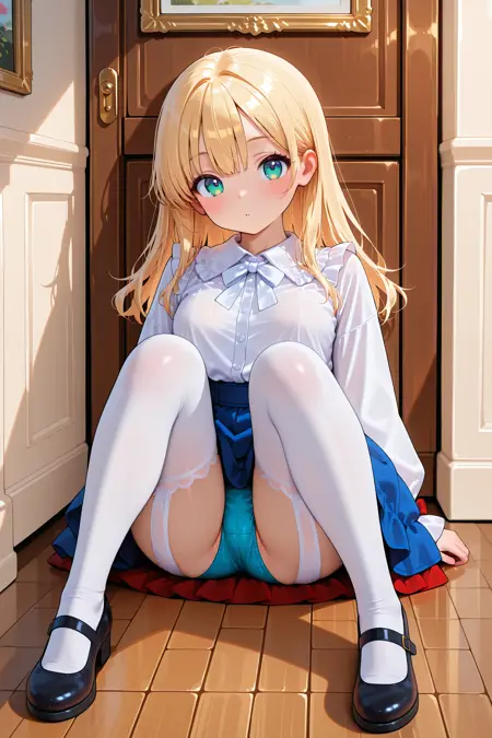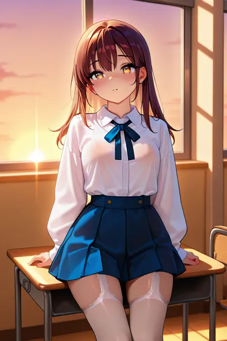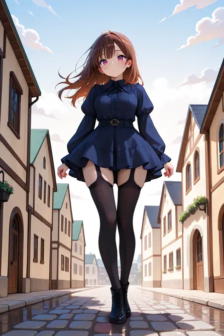 Suspender_thighhighs は、レース縁のニーハイソックスが上に引っ張られている様子を再現することを目的としたLoRAです。
