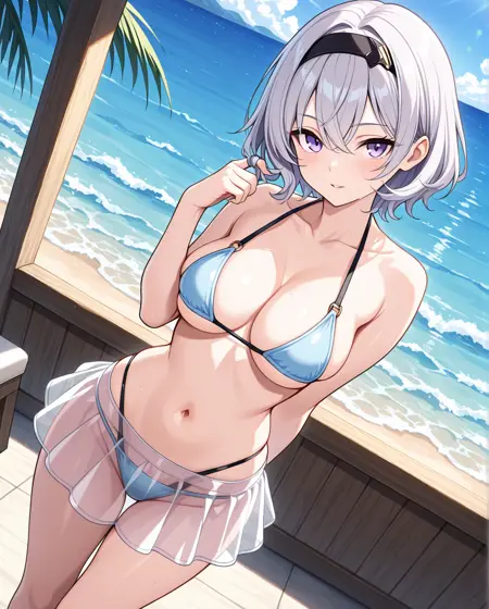 calla, calla from Last Reader Standing, Calla (LRS), lora:Calla\_-\_Last\_Reader\_Standing:1, solo, silver hair, short hair, short silver hair, slightly tousled, sharp bangs, hair between eyes, purple eyes, intense violet eyes, serious expression, small face, slim jawline, wearing a thin black silk headband, minimalist headband, black headband, worn just behind bangs, partially embedded in hair, not on forehead, braided pattern, headband visible, braided black headband, 2B-style headband, worn behind bangs, partially hidden by hair, (braided black headband:1.3), (minimalist headband), headband inspired by 2B, not on forehead, no eye mask,