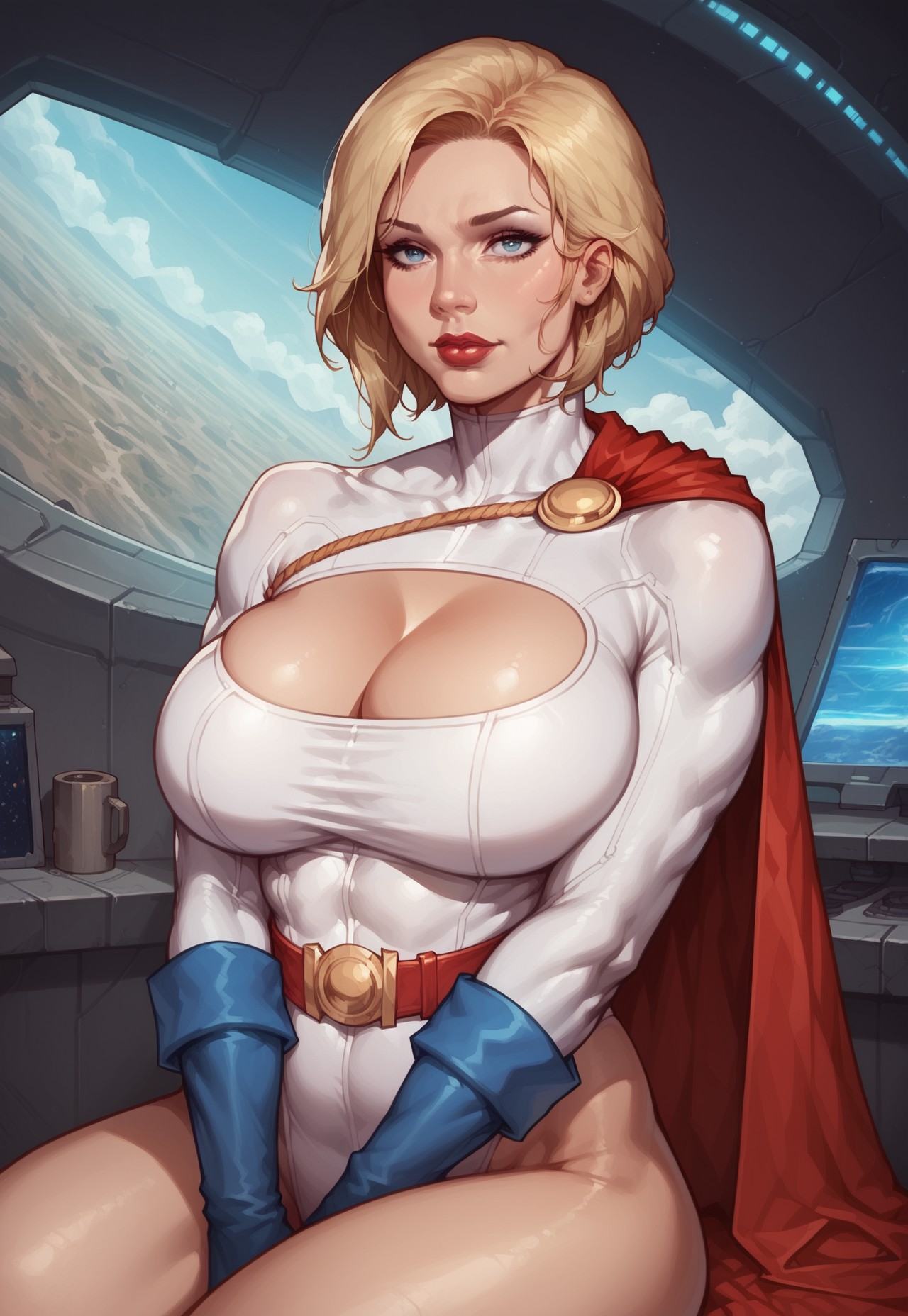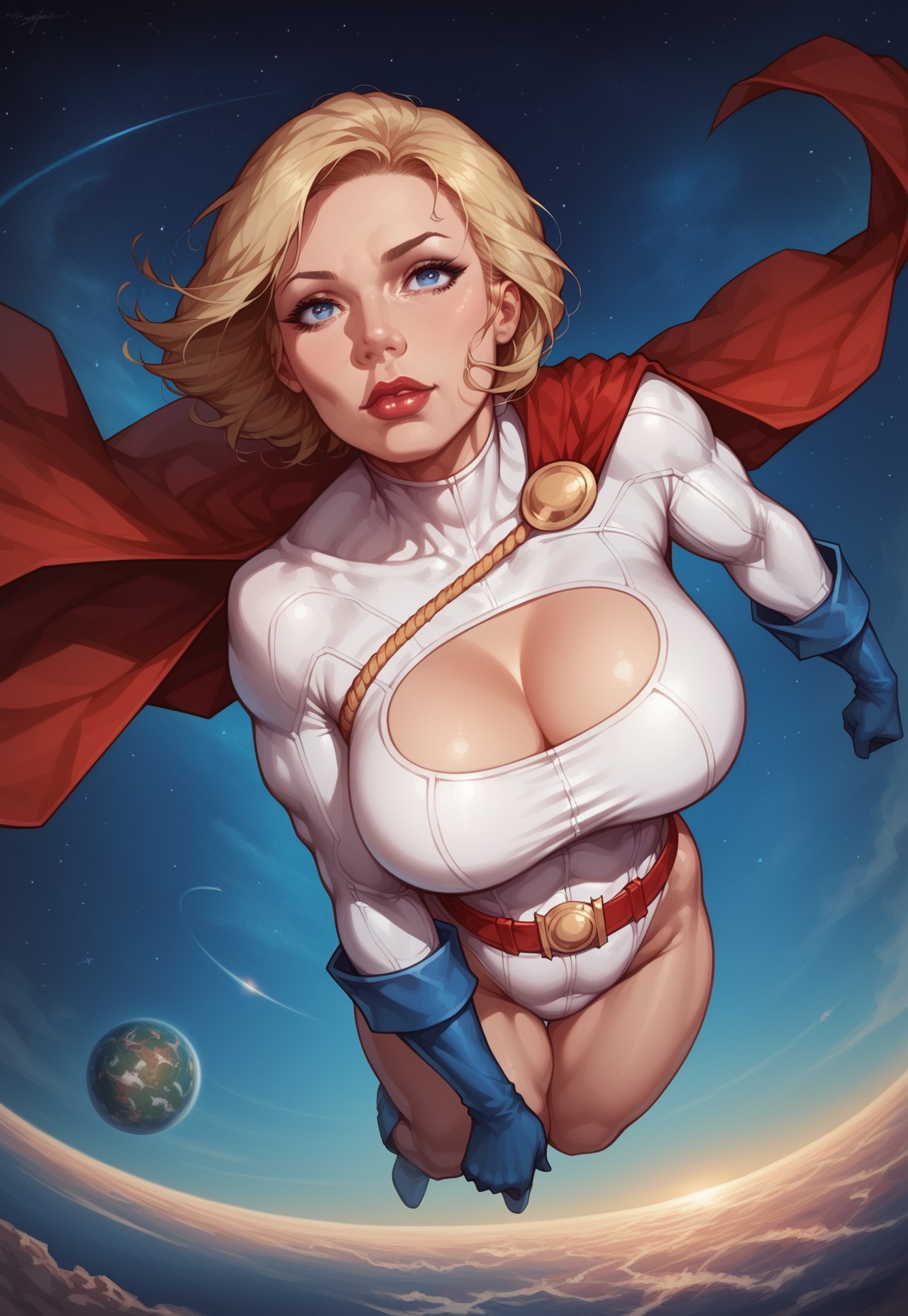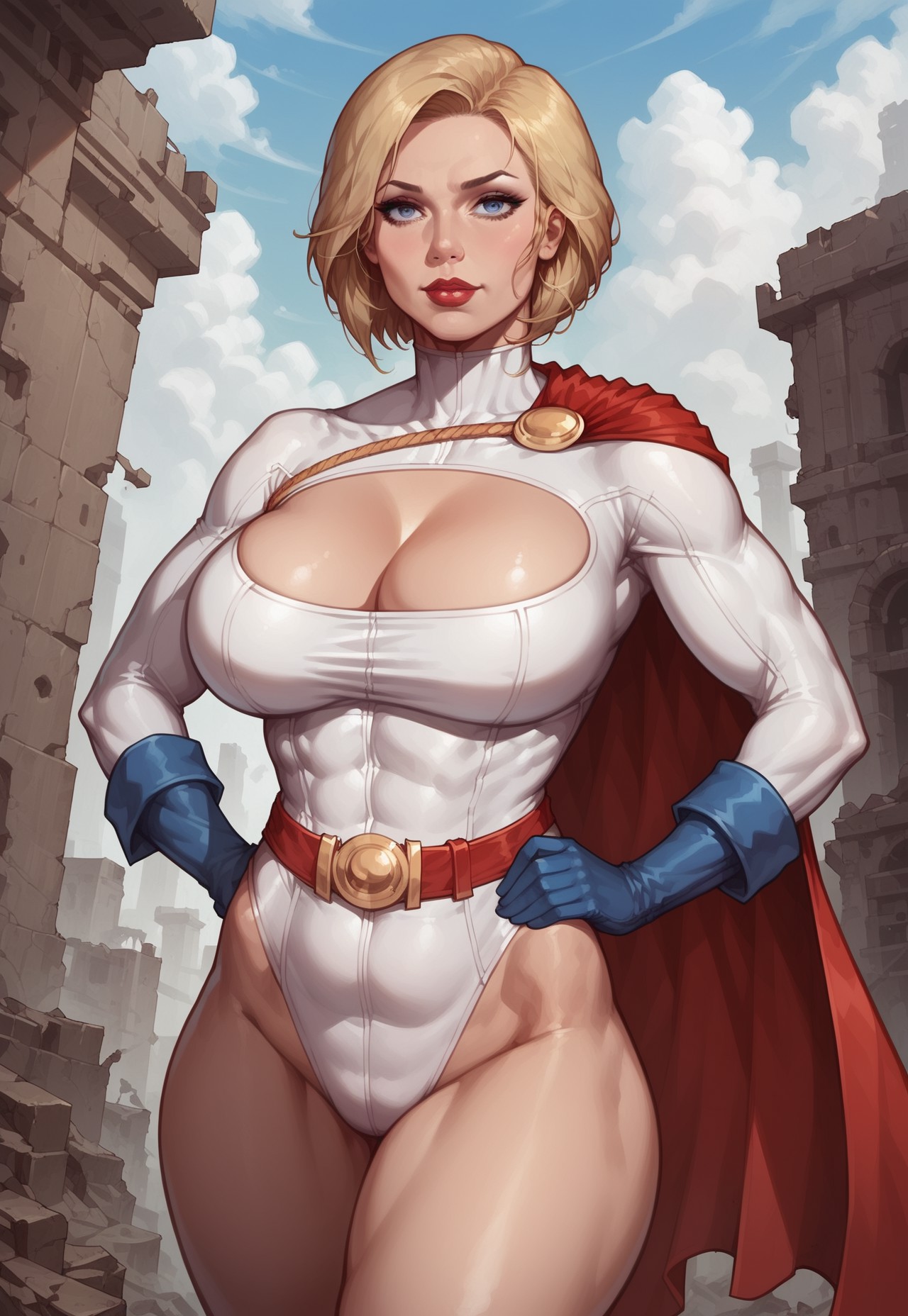 이 모델은 DC 유니버스(지구-투)의 파워걸을 묘사합니다.