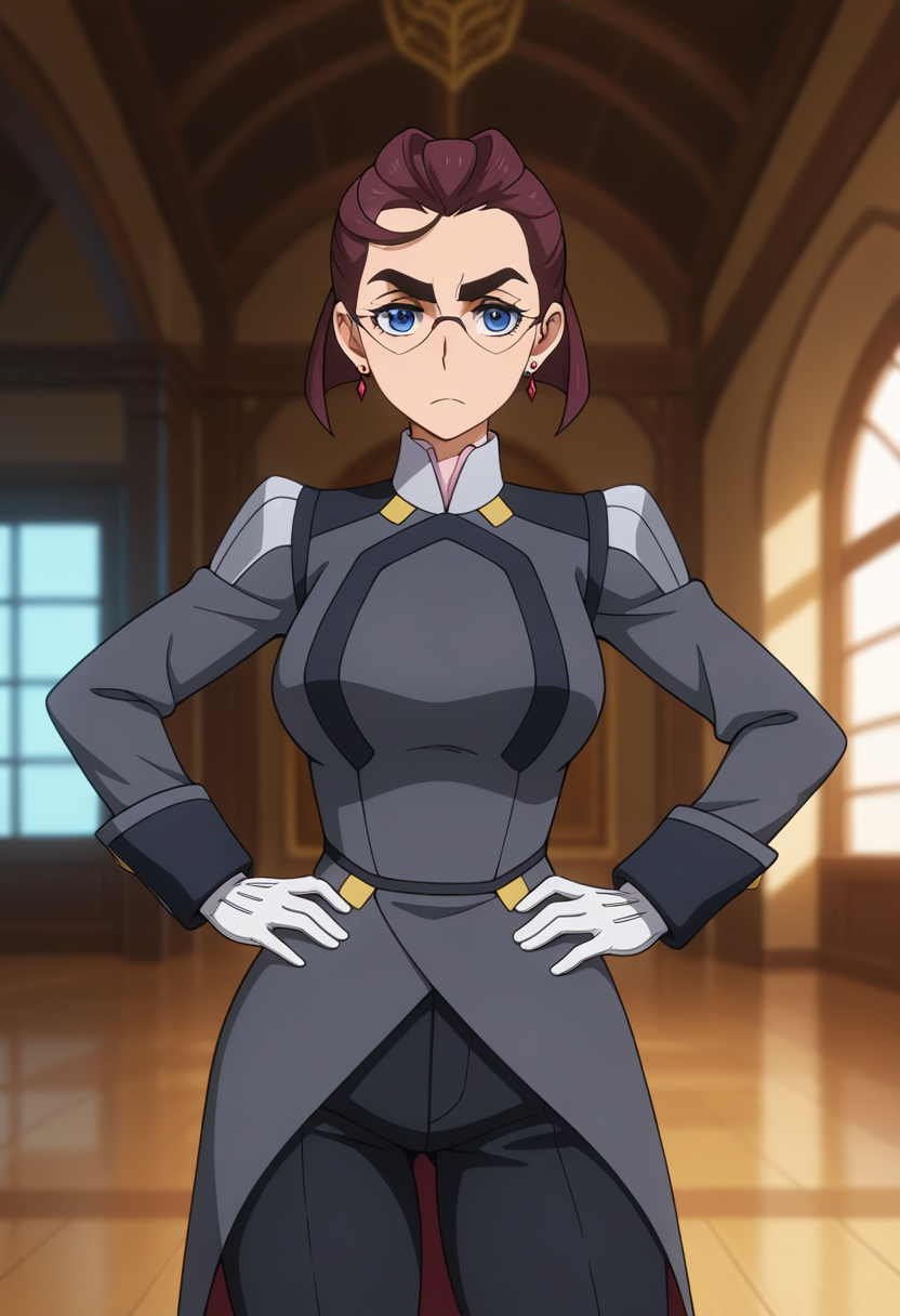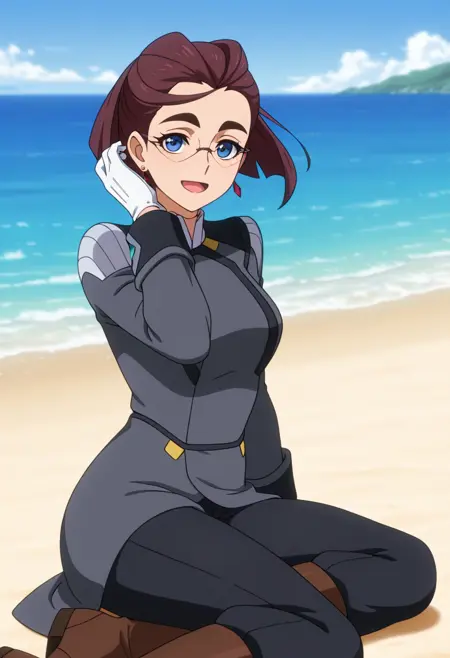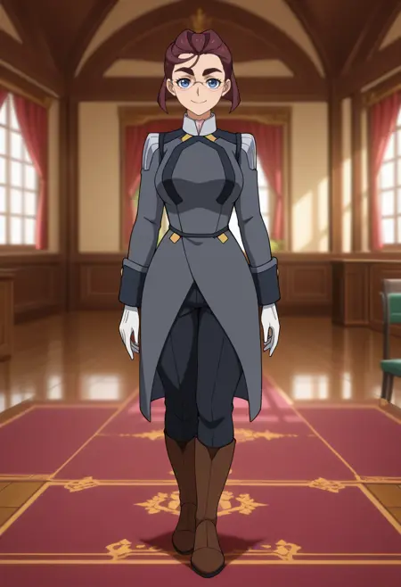 • 군복, 회색 재킷, 긴 소매, 흰 장갑, 검은 바지, 갈색 부츠