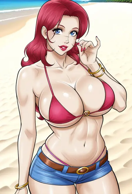 外观提示:红发,蓝眼,口红,大胸,指甲油