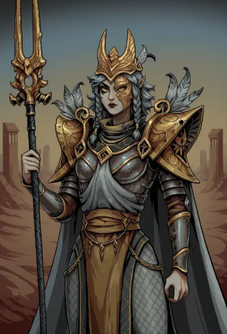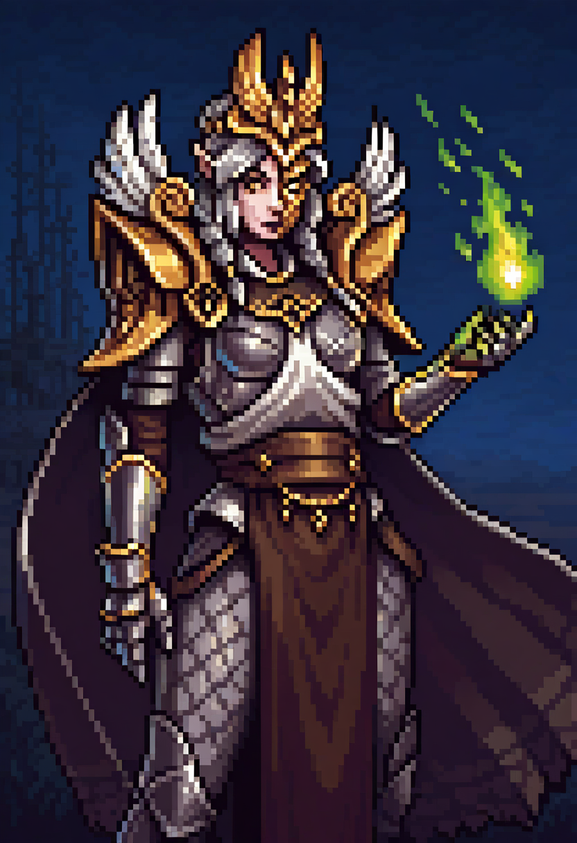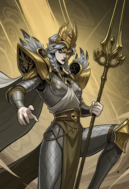 가끔 프롬프트에서 다른 요소의 색상이 갑옷 일부에 적용될 수 있으므로, 원한다면 금색 큰 어깨보호판, 은색 가슴보호판, 은색 장갑처럼 색상을 명시할 수 있습니다.