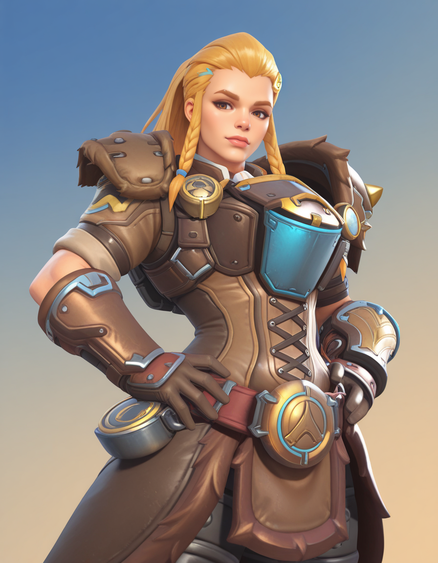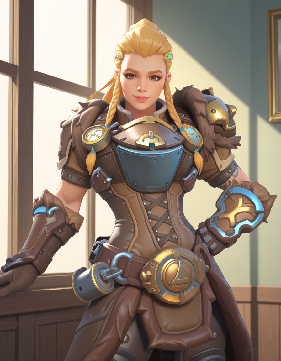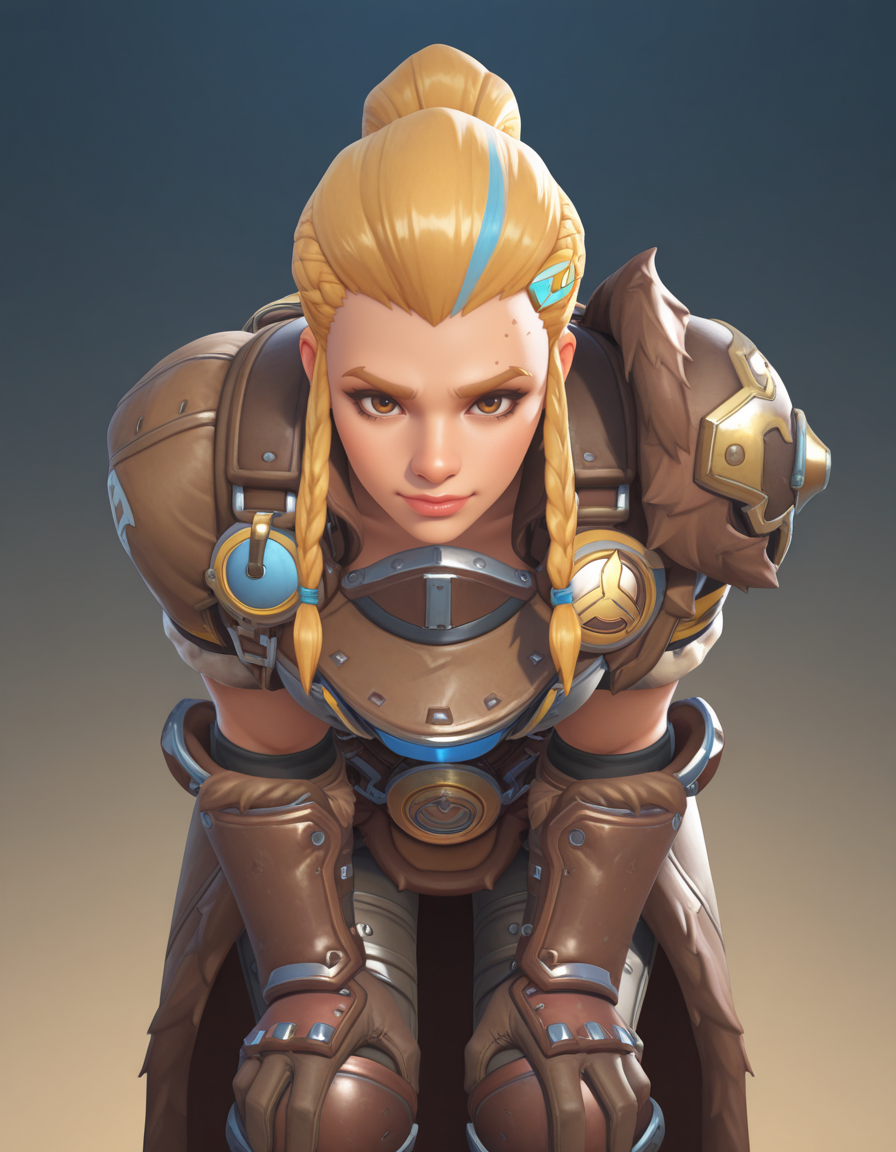 shieldmaiden brig, brigitte (overwatch) , blonde , blue strand of hair,