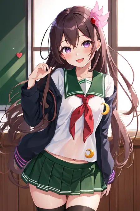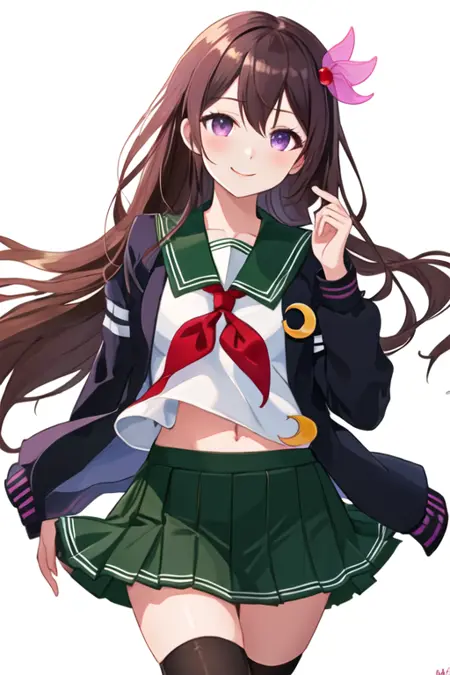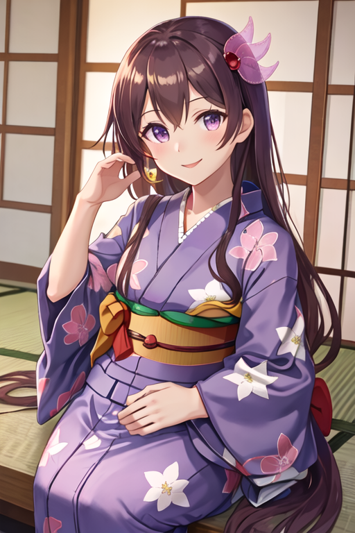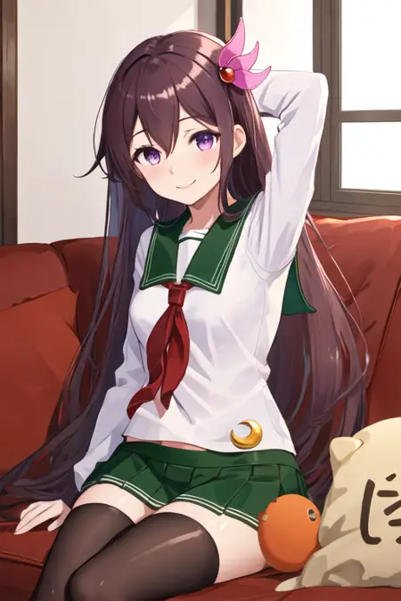 The trigger word is kisaragi_kantaicollection, and the recommended tags are best quality, masterpiece, highres, solo, {kisaragi_kantaicollection:1.15}, long_hair, brown_hair, hair_ornament, purple_eyes, smile, serafuku.