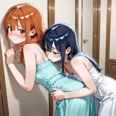 此 LoRA 可帮助你生成一名女性咬/吻另一名女性背部的情景。但常因上背部被长发遮挡而受到干扰。