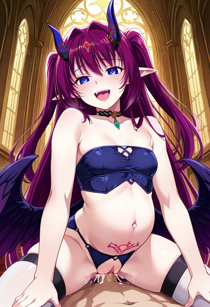 Sylvia Hamartia, blue eyes, elf, blue horns,