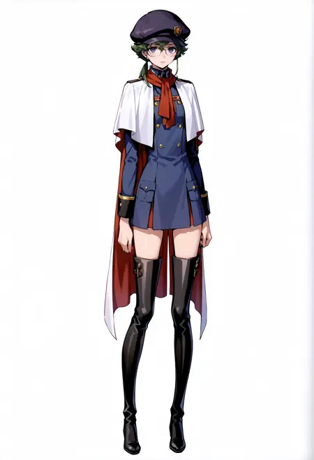 军装: 短发,马尾,大腿袜,靴子,过膝靴,裙子,斗篷,小斗篷,校服,连衣裙,黑色鞋履,制服,绝对领域,黑色大腿袜,出租车帽,围巾