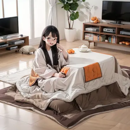 ※从SD15_V2开始,我也一并训练了暖桌(kotatsu)(仅混合了一点学习素材,但意外地有效果)。一个LoRA即可让角色穿上半纏并坐在暖桌里。