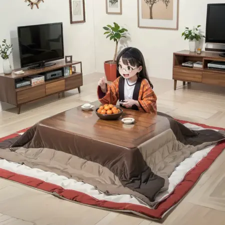 *从SD15_V2开始,我让暖桌也一同学习。一个LoRA即可让角色穿着半纏进入暖桌。