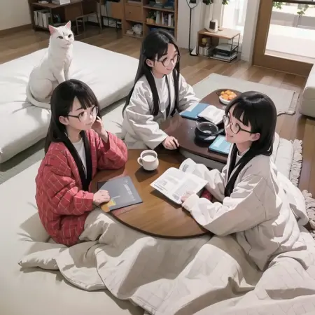 * SD15_V2부터는 코타츠도 함께 학습시켰습니다. 하나의 LoRA로 하텐을 입고 코타츠에 앉을 수 있습니다.