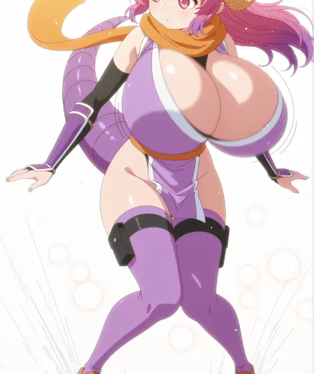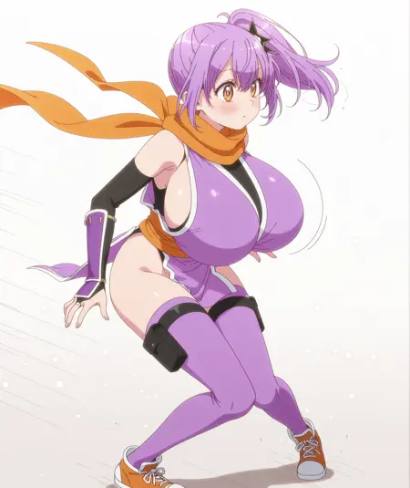 胸部、巨乳、露胸、手套、露肩、断袖、和服、无袖、肘部手套、围巾、橙色围巾、忍者,
