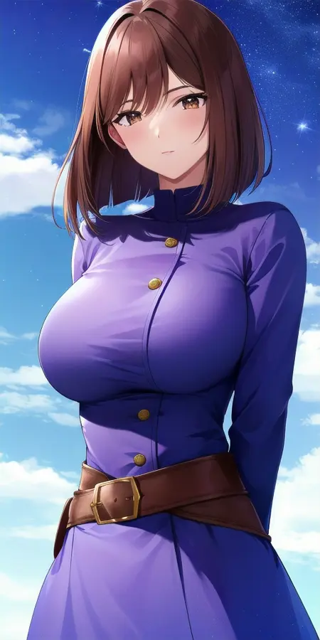 purple_jacket_coattails_white_tight_pants_military_uniform_turtleneck_white_hairband_white_ascot: 그녀의 하나구미 유니폼.