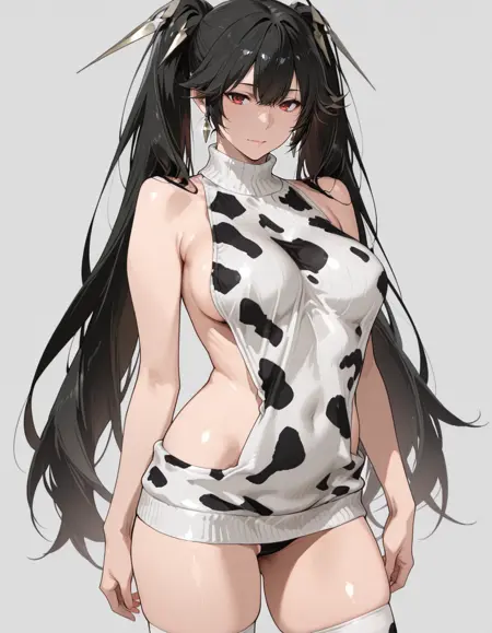 mai_bj_clothing_sexy_cow,cow_print,virgin_killer_sweater,thighhighs