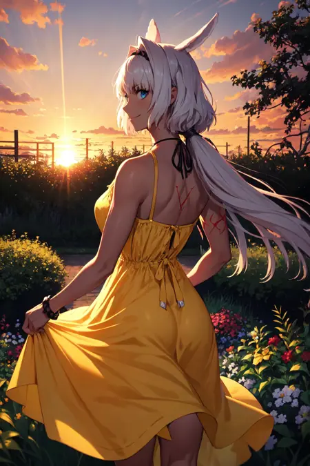 触发词:必须始终包含 "Caenis, animal ears, dark-skinned female",可选添加 "body markings" 以体现她的体表纹身,或添加 "Toned, abs" 以呈现她应有的身材。