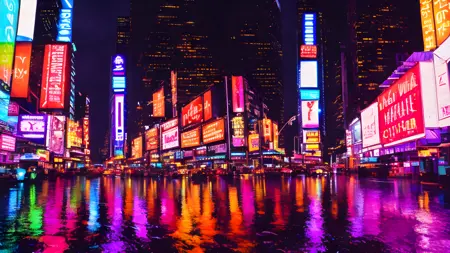 LoRA trained on 100 night skyscrapers/city centre images. My first attempt.