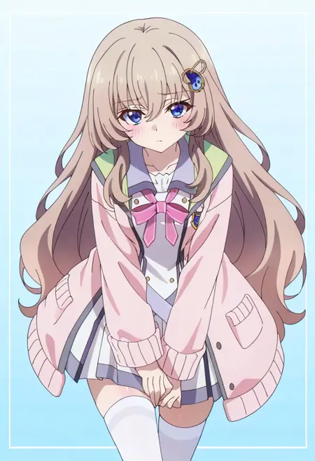 | 训练词汇 | miyako, long hair, wavy hair, light brown hair,bangs, eyelashes,blue eyes, anime screenshot已复制! miyakoSchool,school uniform, hair ornament,hairclip,pink cardigan, open cardigan, white dress, pink bow,pleated skirt,zettai ryouiki,white thighhighs,brown footwear,已复制! miyakoMaid,twintails, maid headdress,maid, red-framed eyewear, glasses,bare shoulders, detached collar, neck ribbon, grey ribbon, black dress,frills, detached sleeves, green bow已复制! miyakoAlternDress, white choker, collared dress,aqua ribbon,puffy sleeves dress已复制! |