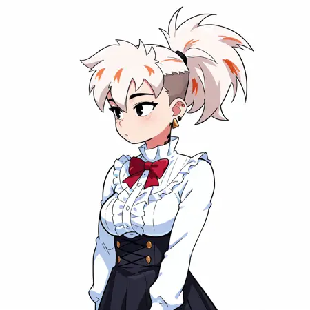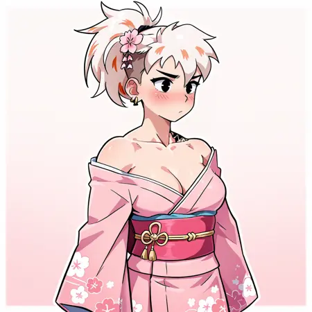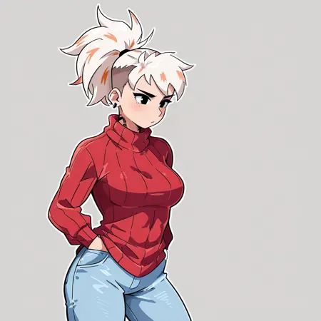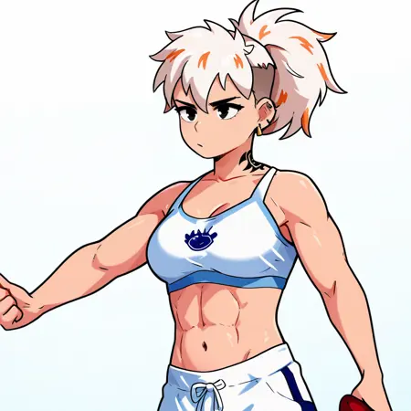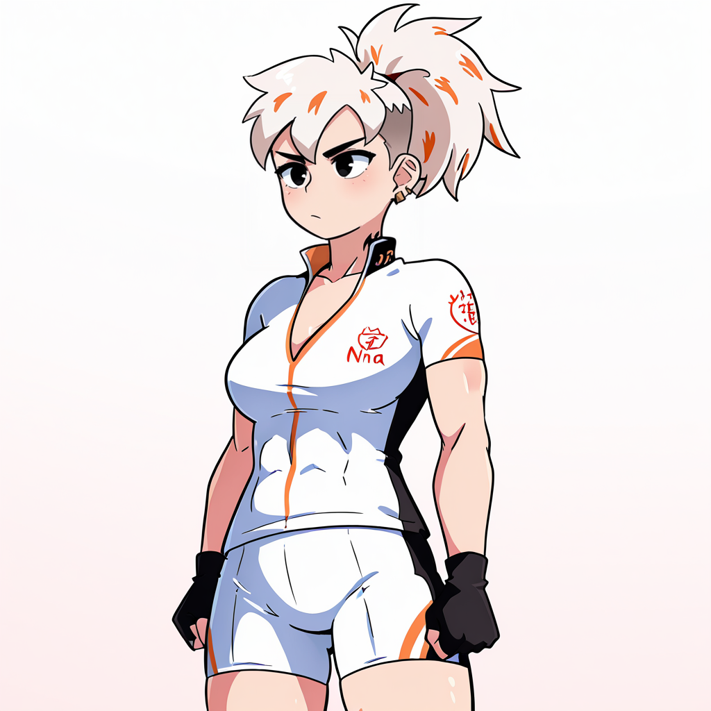 • 触发词:Nina, 1girl, abs, jewelry, medium breasts, earrings, muscular female, ponytail, white hair, black bikini, black eyes, swimsuit, multicolored hair, navel, cleavage, ear piercing, toned, jacket, tattoo, cowboy shot