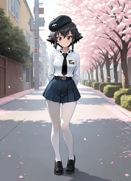 | 학습된 단어 | 1girl, solo, black hair, short hair, bangs, hair between eyes, brown eyes, braid, side braid, pepperoni (girls und panzer),복사됨! white shirt, dress shirt, long sleeves, school uniform, black necktie, emblem, pleated skirt, white pantyhose, beret, black headwear, black footwear, anzio school uniform,복사됨! |