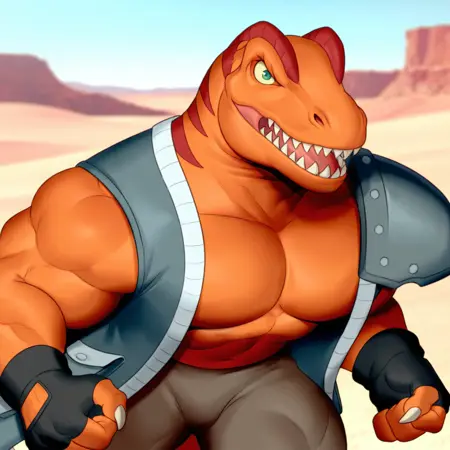 Ridge is a mysterious dinosaur who fights as champion in an intergalactic fighting arena, he was once forced to serve the vile Queen Zarconda. Ridge's species is never mentioned, but based on the two large crests on his head, he might be a Dilophosaurus