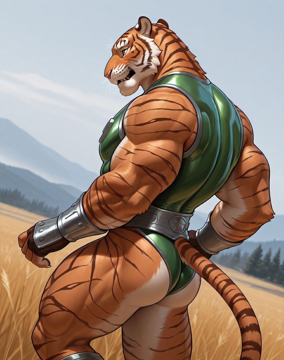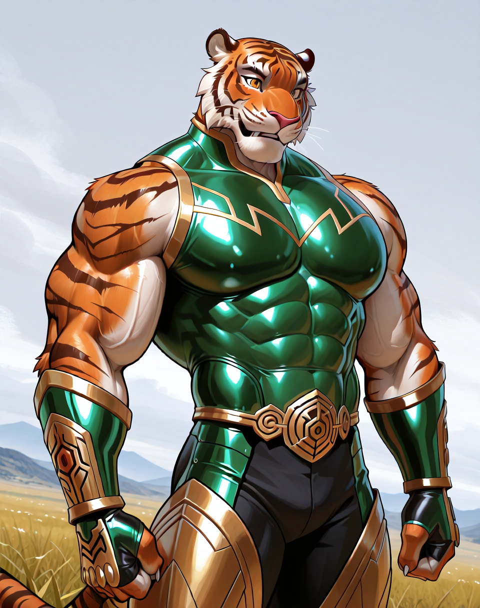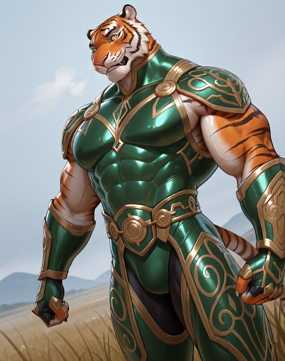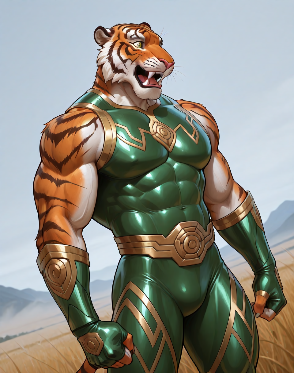 このLoRA向けのプロンプトは以下の通りです:(Kalibak Tiger, muscular, tiger, )