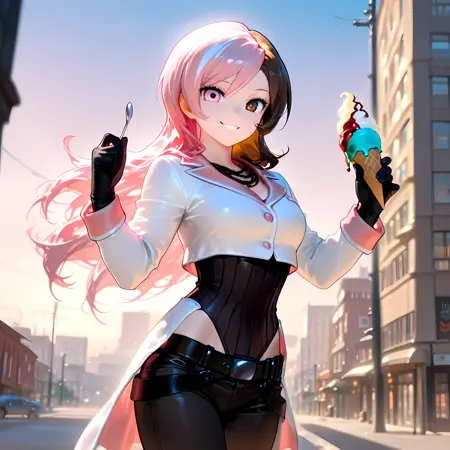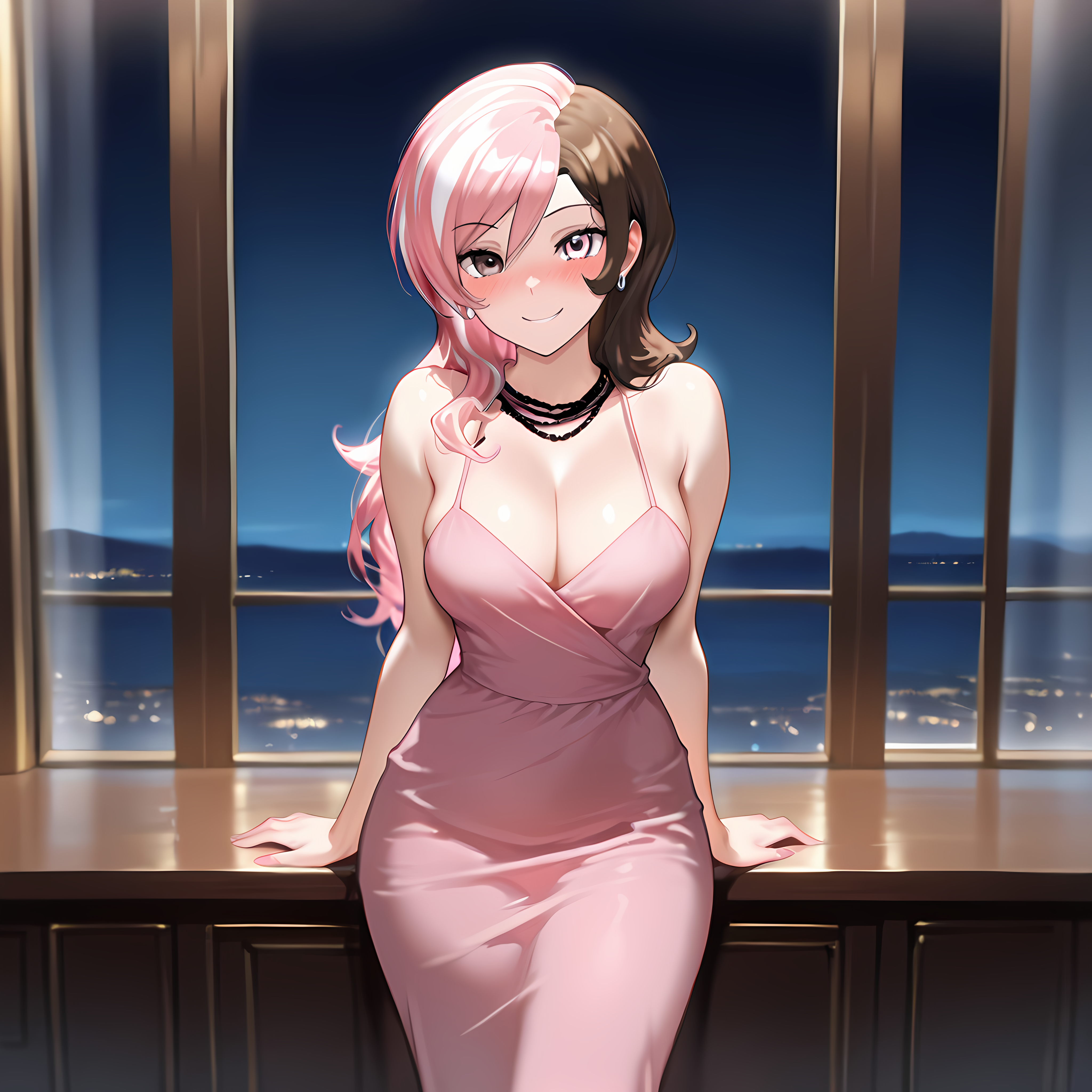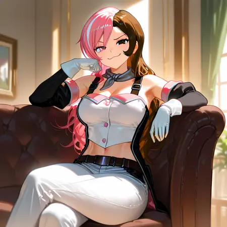 Base Appearance: neo politan, multicolored hair, brown hair, pink hair, split-color hair, heterochromia