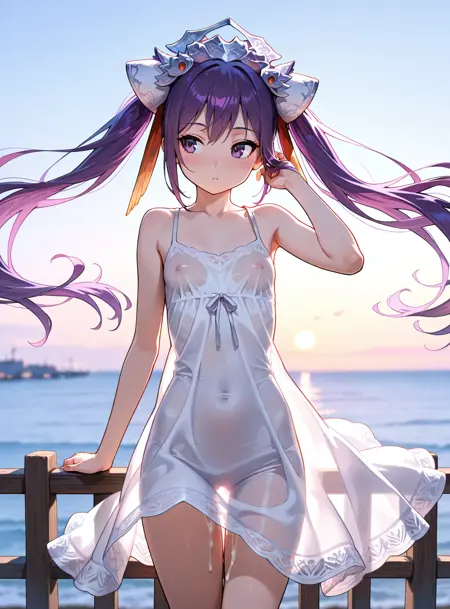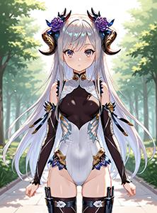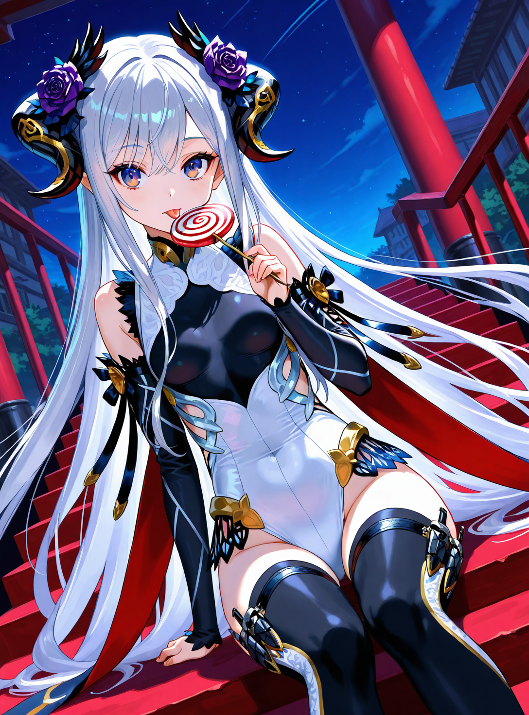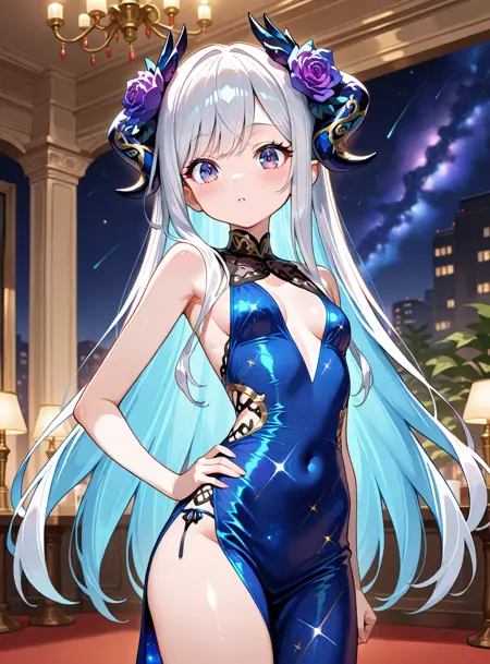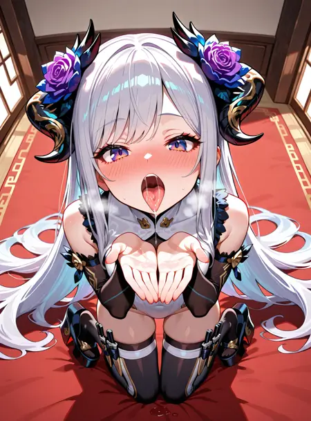 long hair, hair flower, horns hair ornament,服/衣服/clothing: