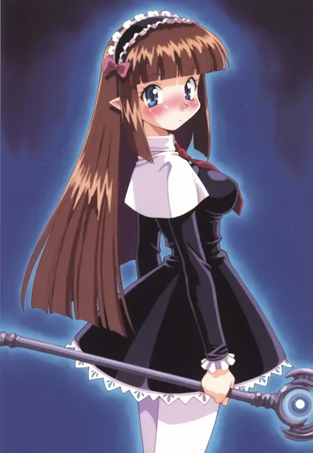 这个版本的法师源自最初版的《魔界战记》第一作,但后来被重新设计并替换为女巫。我觉得她被移除真是太遗憾了,因此至少为她制作了这个LoRA。我认为0.7-1.0的效果最好。