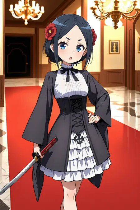 “wide sleeves, black sleeves”를 추가하면 토우도치세가 입은 듯한 화양조합 스타일의 넓은 소매를 가진 전통적인 변형이 가능합니다.
