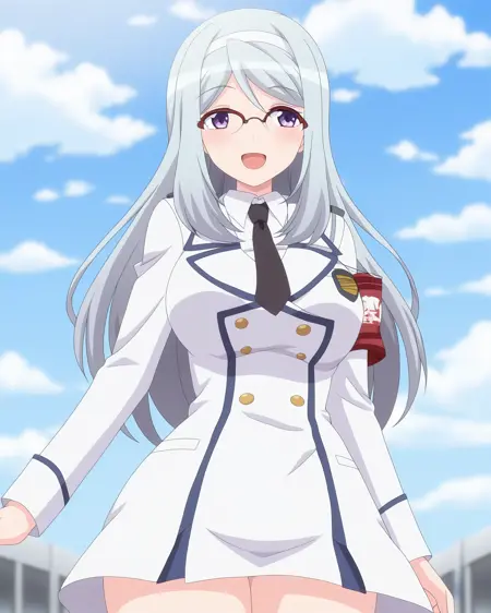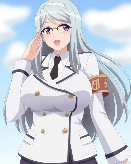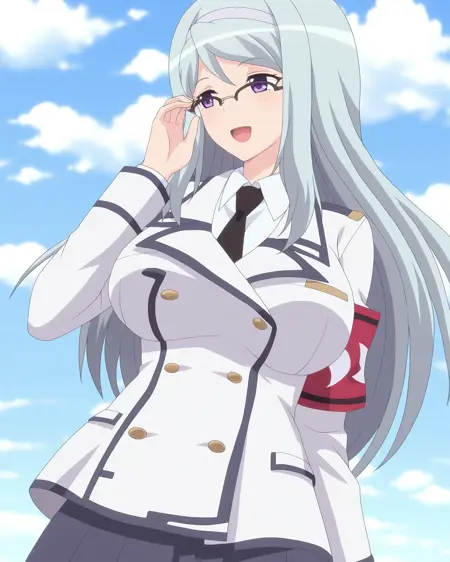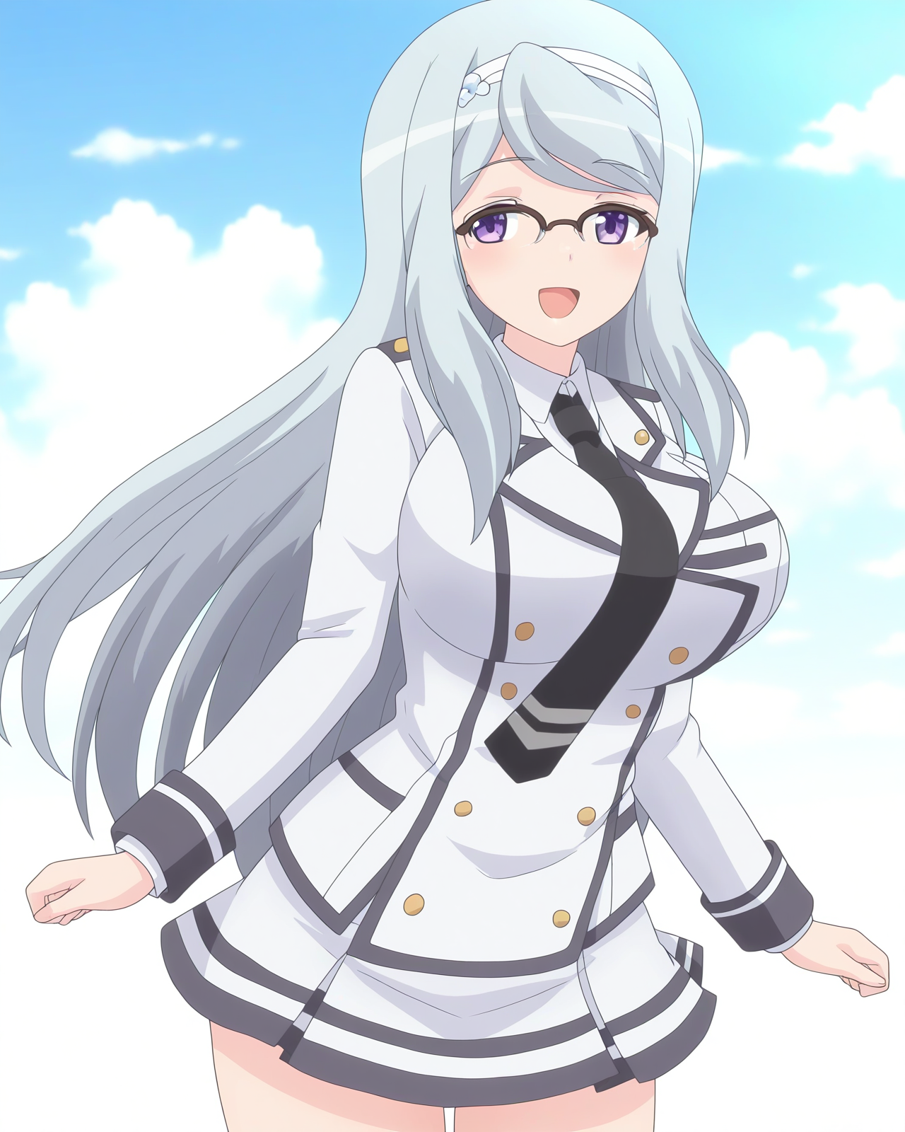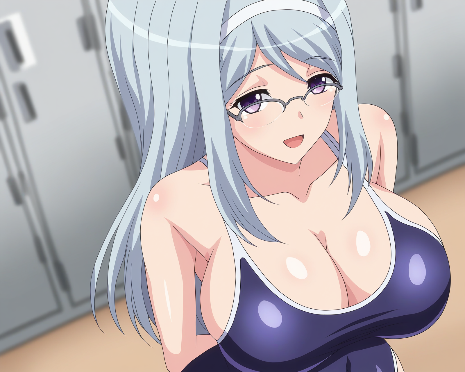 sizuru takahama,1girl,breasts,glasses,long hair,[purple eyes|blue eyes],hairband,over-rim eyewear,[blue hair|grey hair]