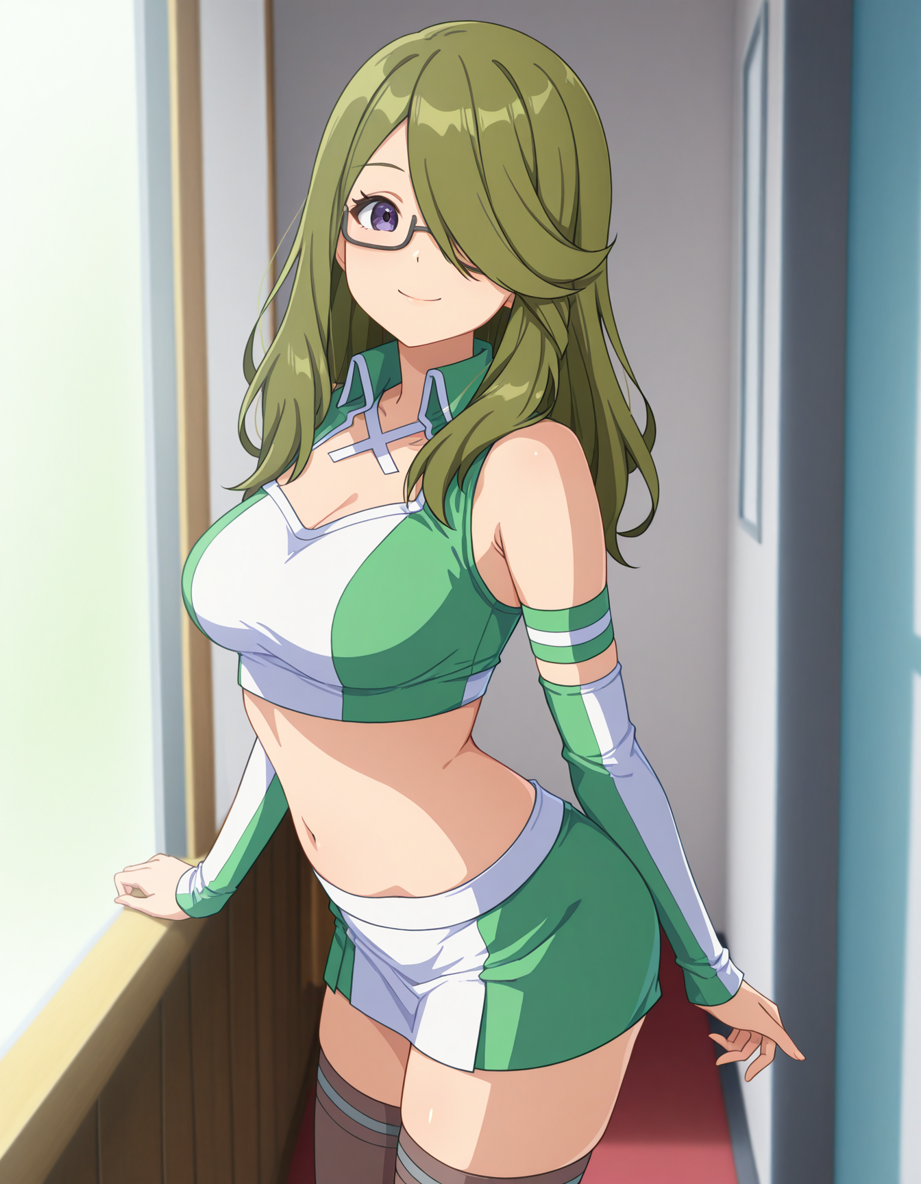 (RQ 복장: rqoutfit, 크롭탑, 마이크로스커트, 분리형 소매, 허벅지 길이 스타킹)