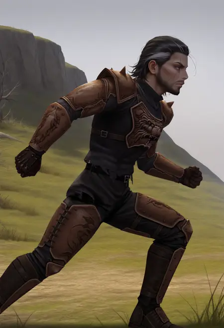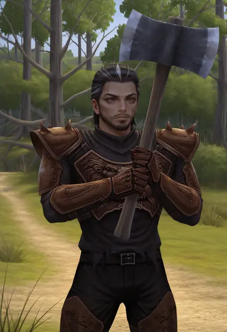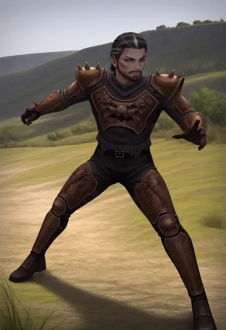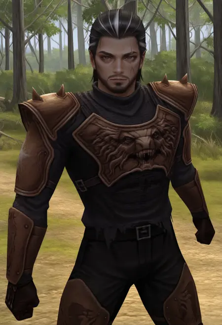 chainmail, breastplate, spiked pauldrons, rerebrace, bracer, gloves, pants, cuisses, knee pads, belt, greaves, boots